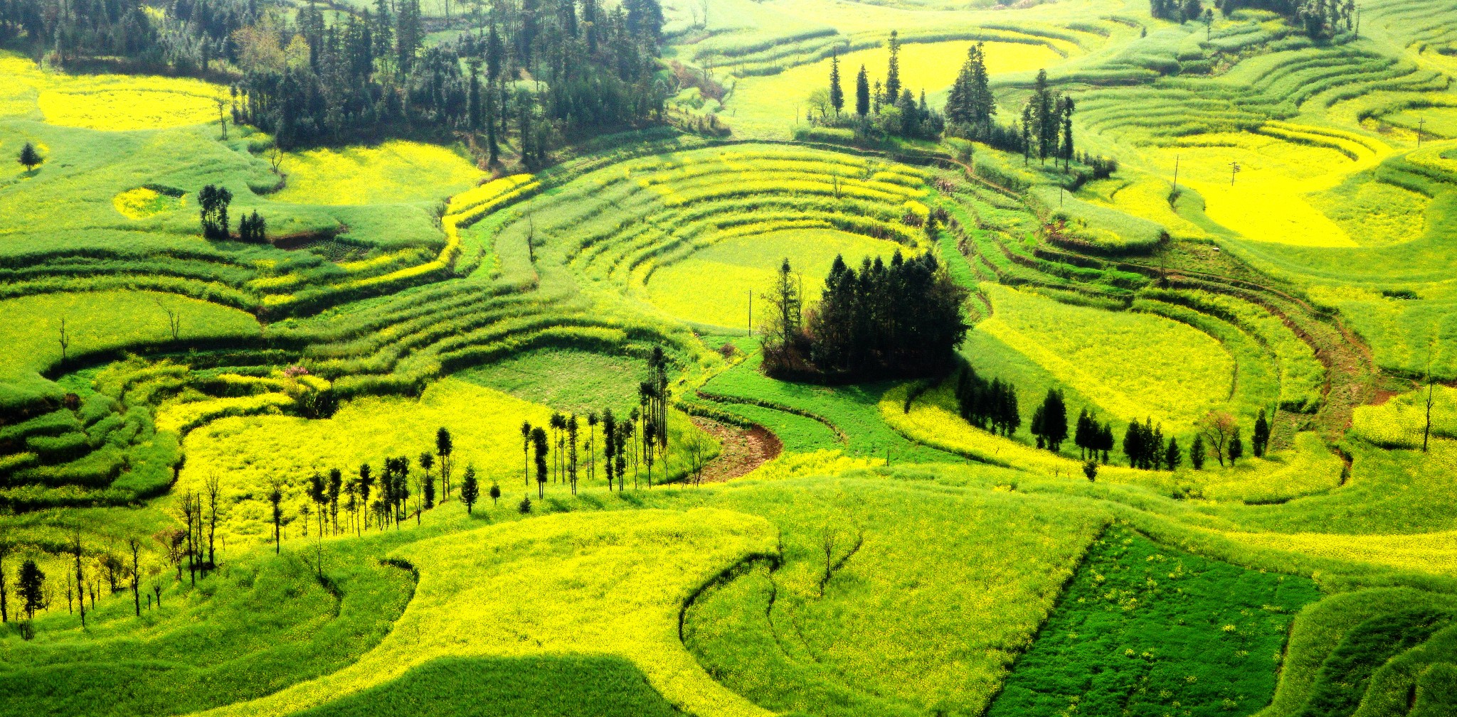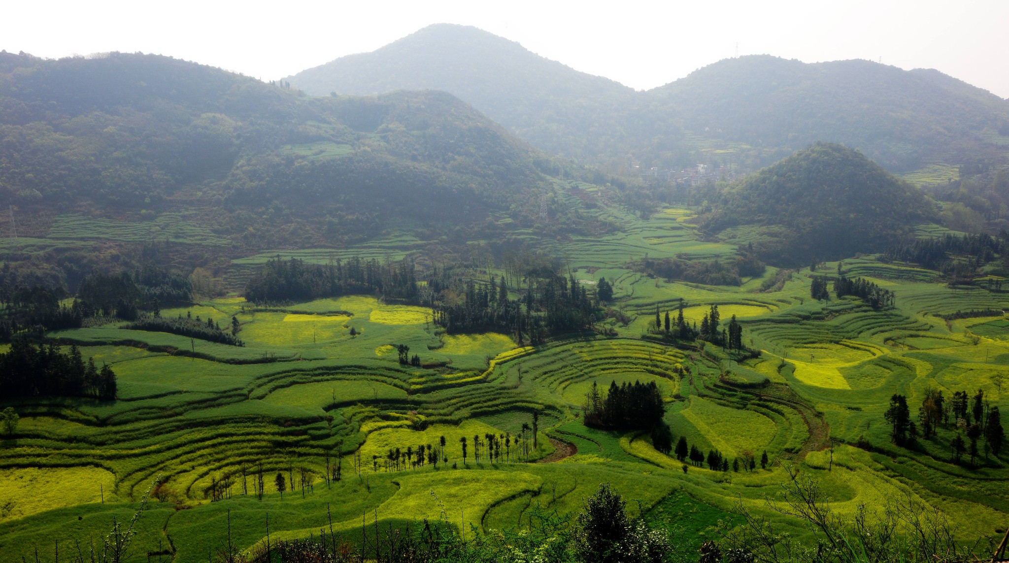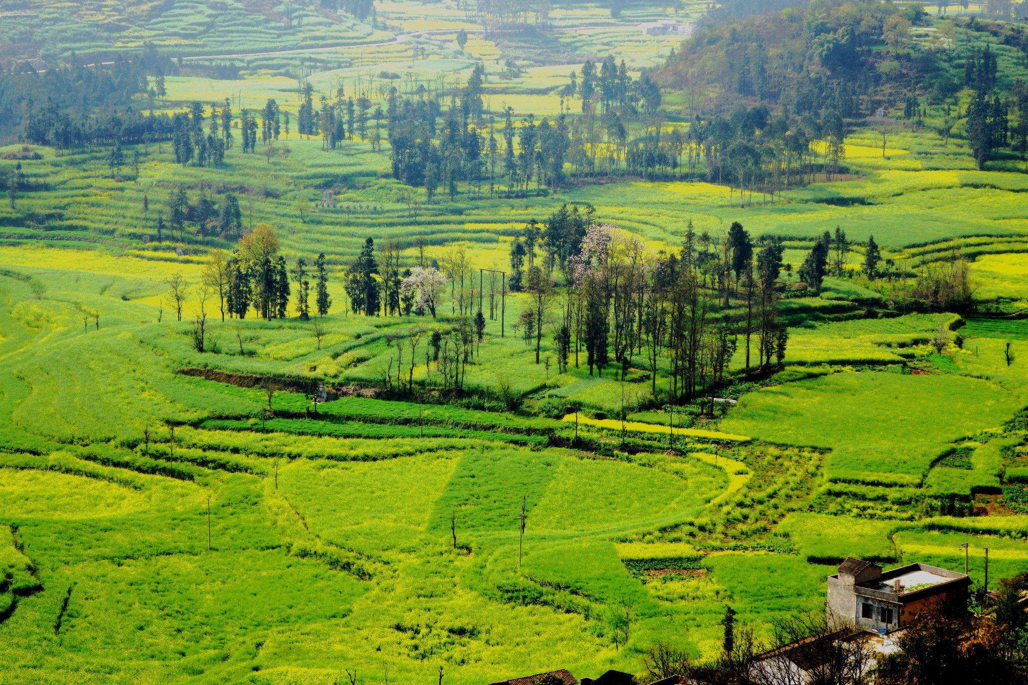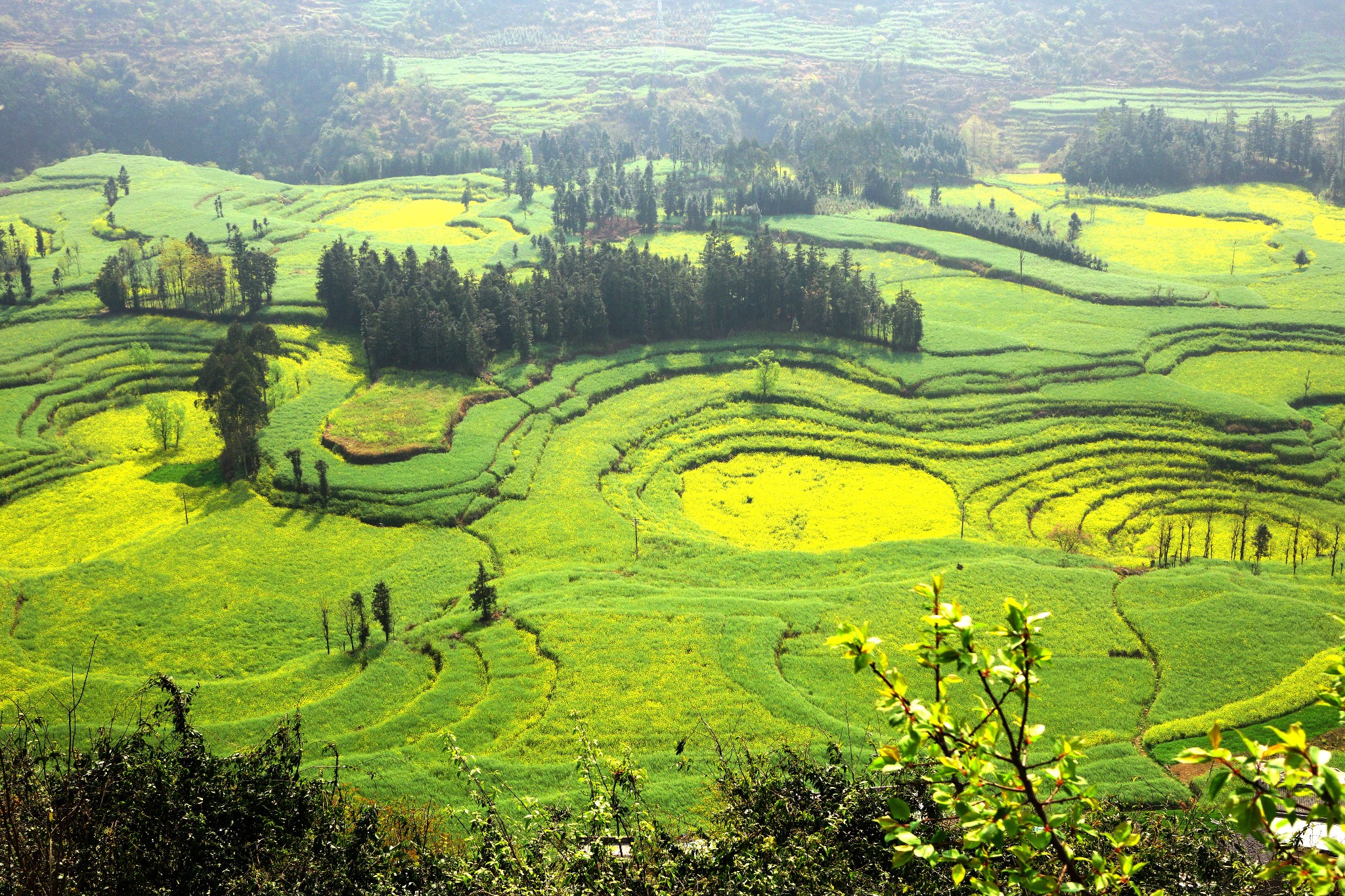 3月下旬,罗平油菜花有点要落了。虽然当地为了让花期更长一些,岔开了播种时间,仍是结了籽的绿色占居了大部分。天气也有些要热的感觉,不是那种多云但好看的天气。去之前林妹妹查天气预报,说一直有雨,小领队说,高原的天气,天气预报是不准的。我想可能是因为高原的缘故,小气候总是变化快的。