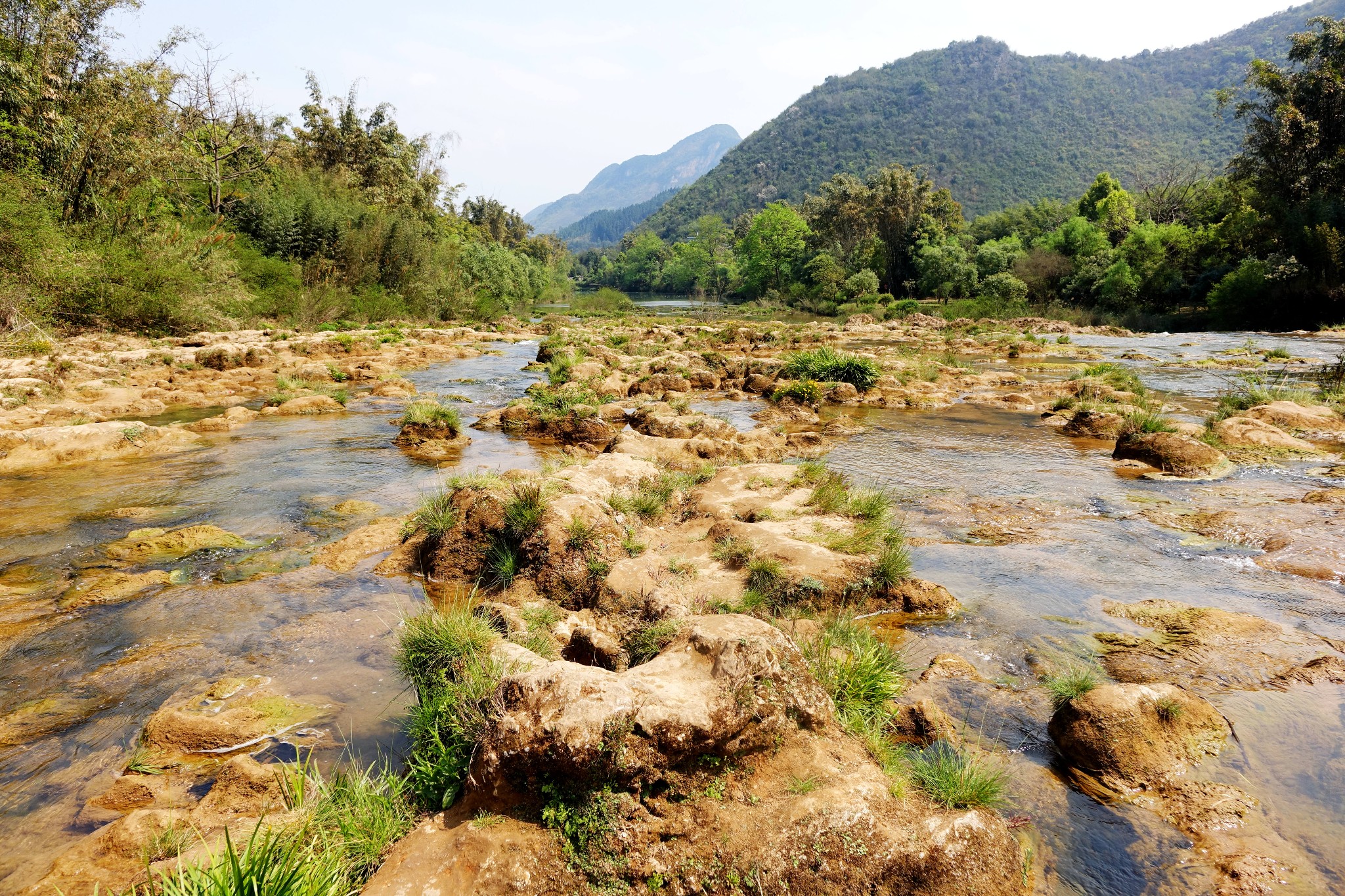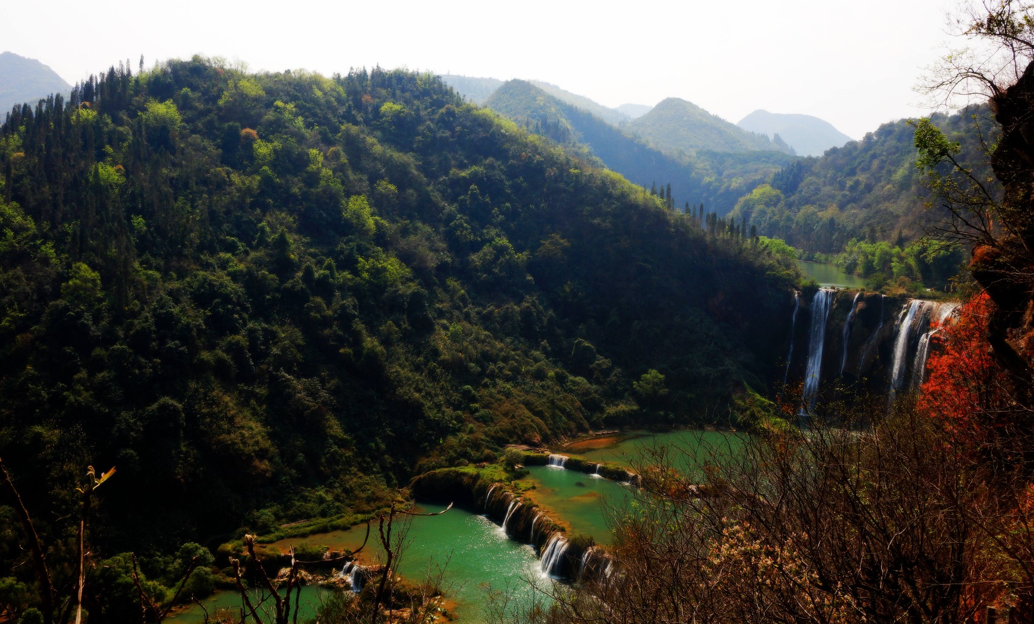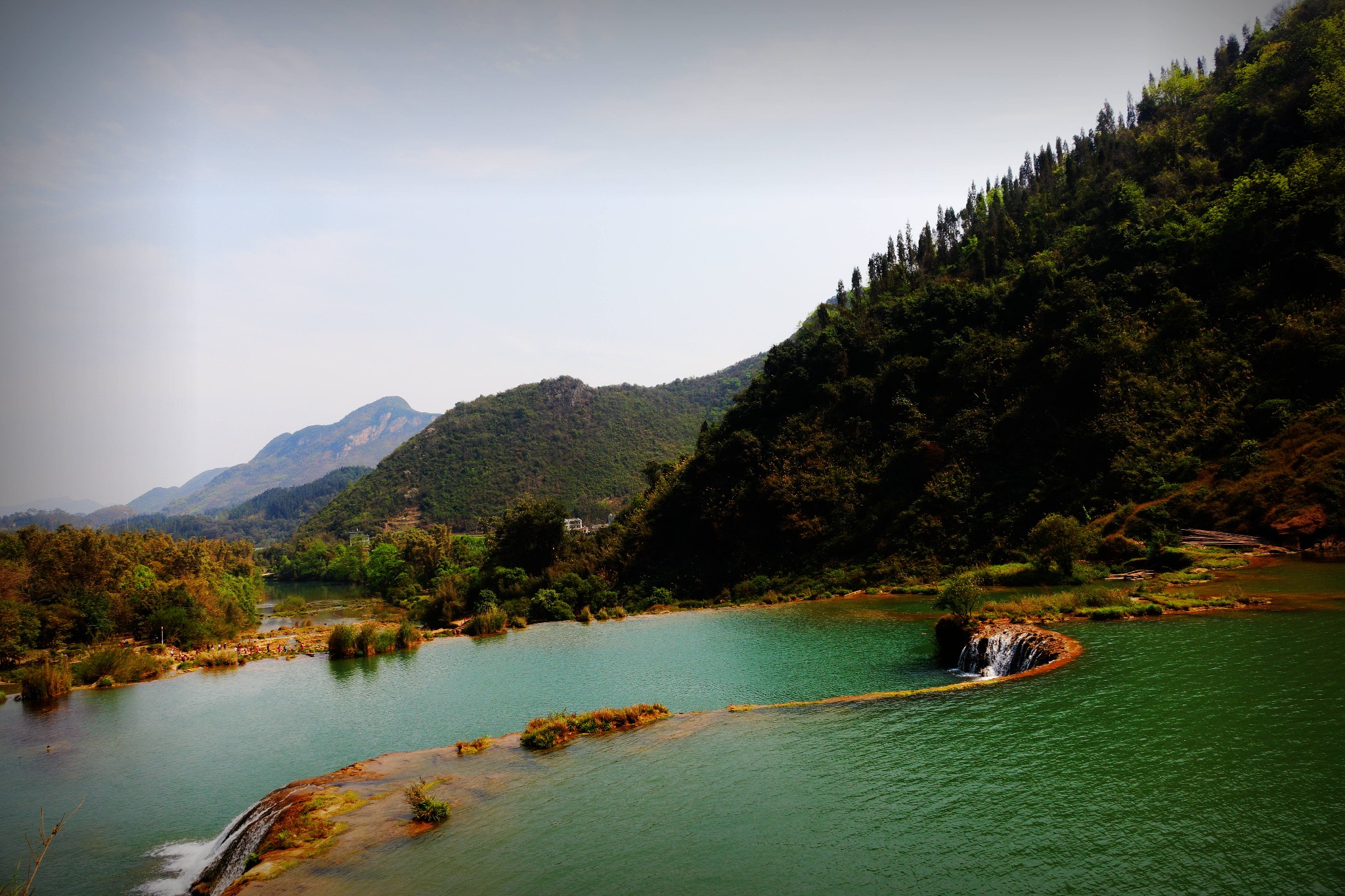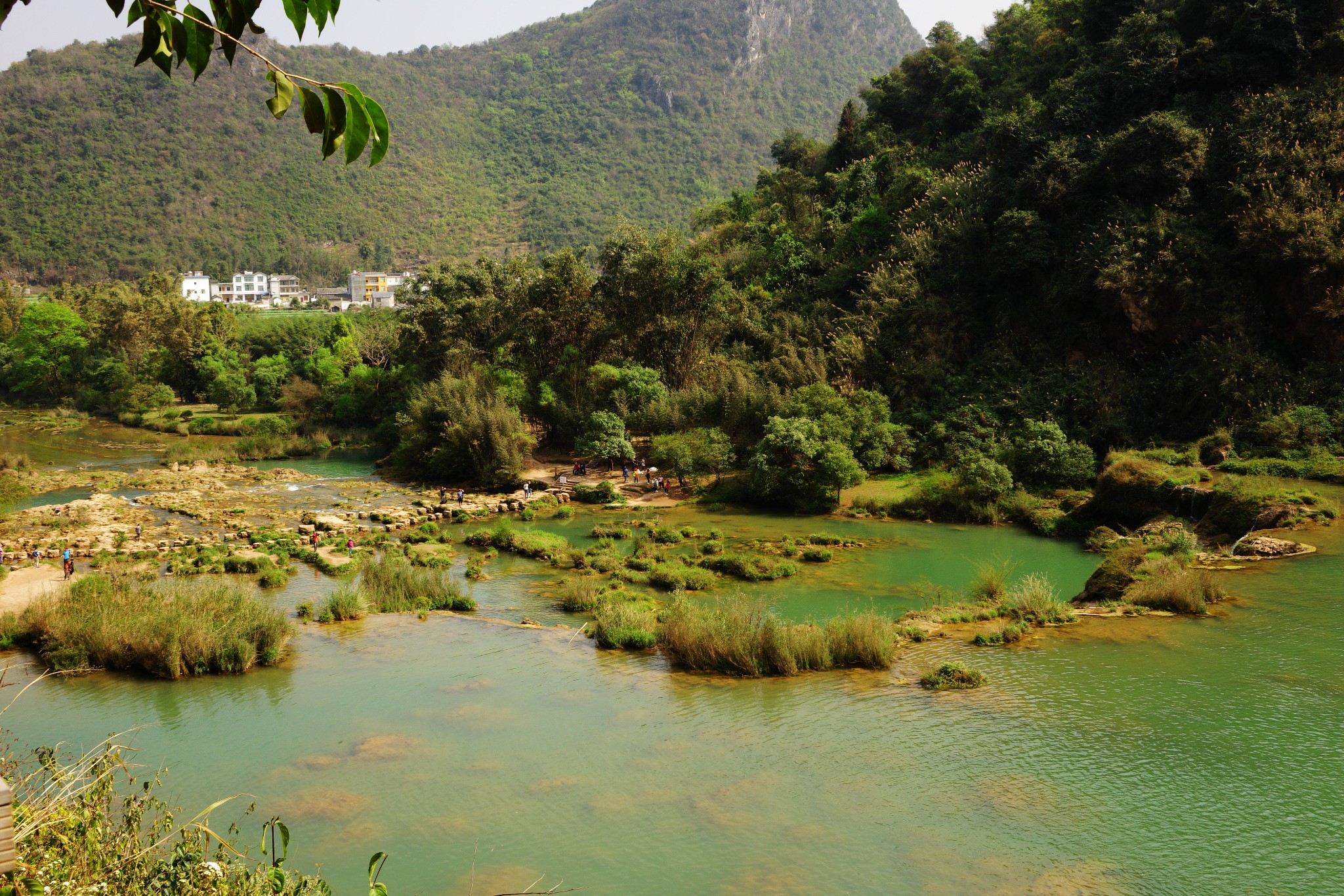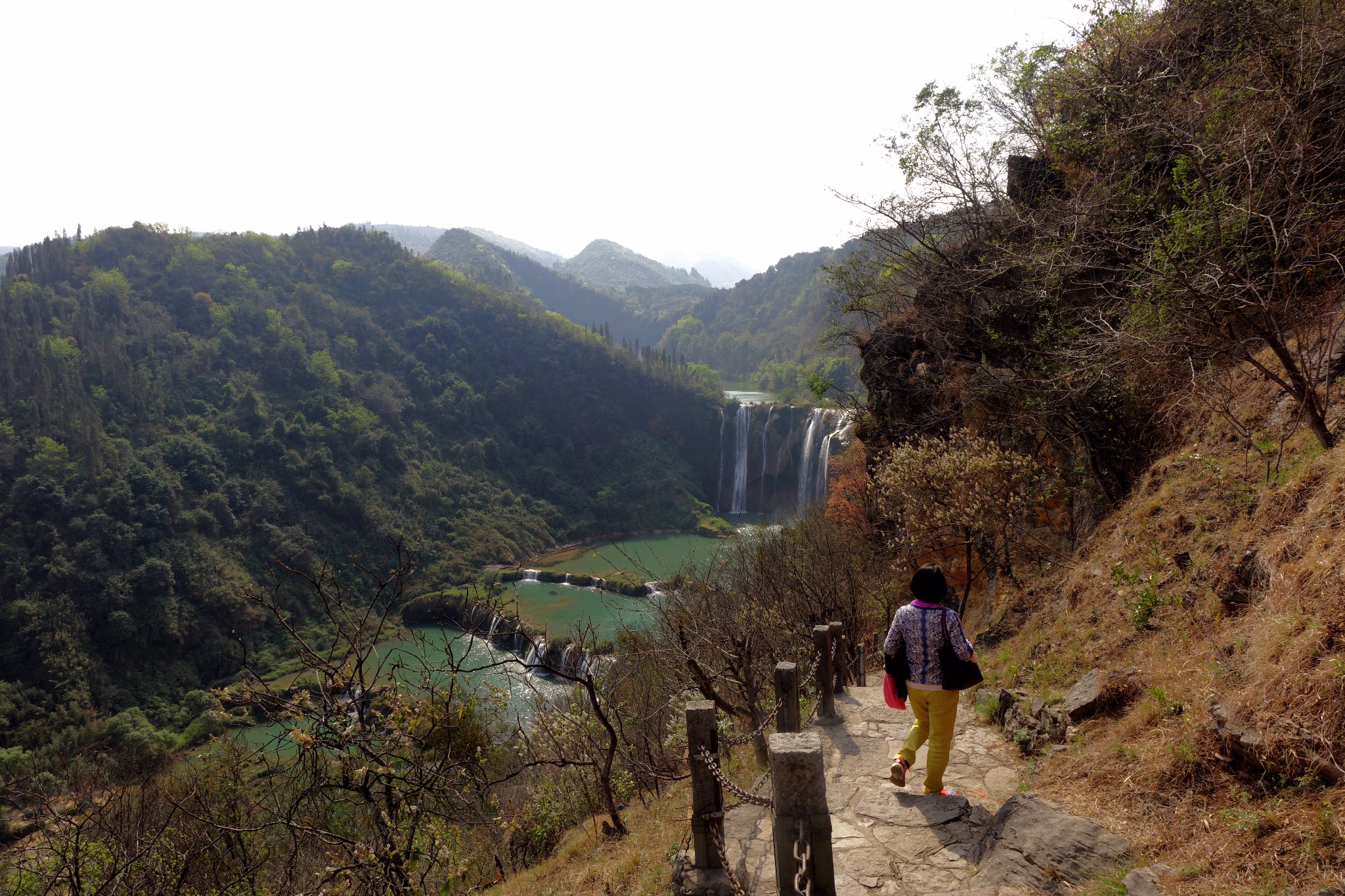 午饭后,先到了九龙瀑布。网上介绍,罗平九龙瀑布群,位于云南省罗平县 城北22公里处。由于特殊的地质构造和水流的千年侵蚀,在此形成了十级高低宽窄不等,形态各异的瀑布群,其中最大的一级宽112米,高56米,气势恢宏,蔚为壮观,号称九龙第一瀑。九龙瀑布群因其瀑布众多,景点密集而形成其独有的观赏特点,一年四季美景不断,素有“九龙十瀑,南国一绝”的美誉。