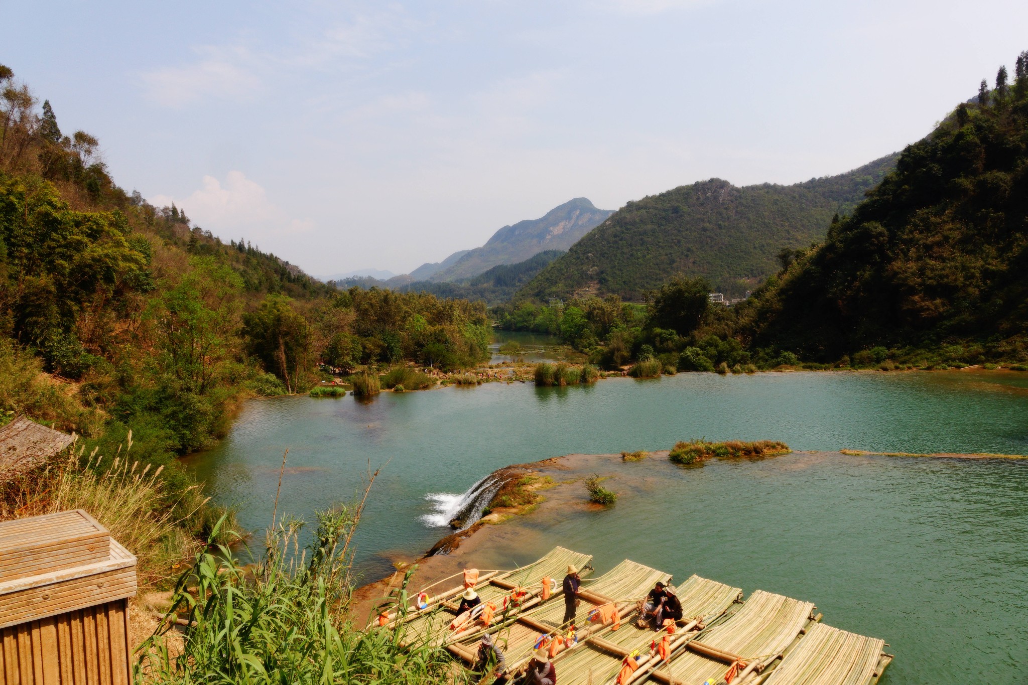 应该可以坐竹筏在游瀑布。只是这一行程我们的自费活动基本没有,所以也没有坐。