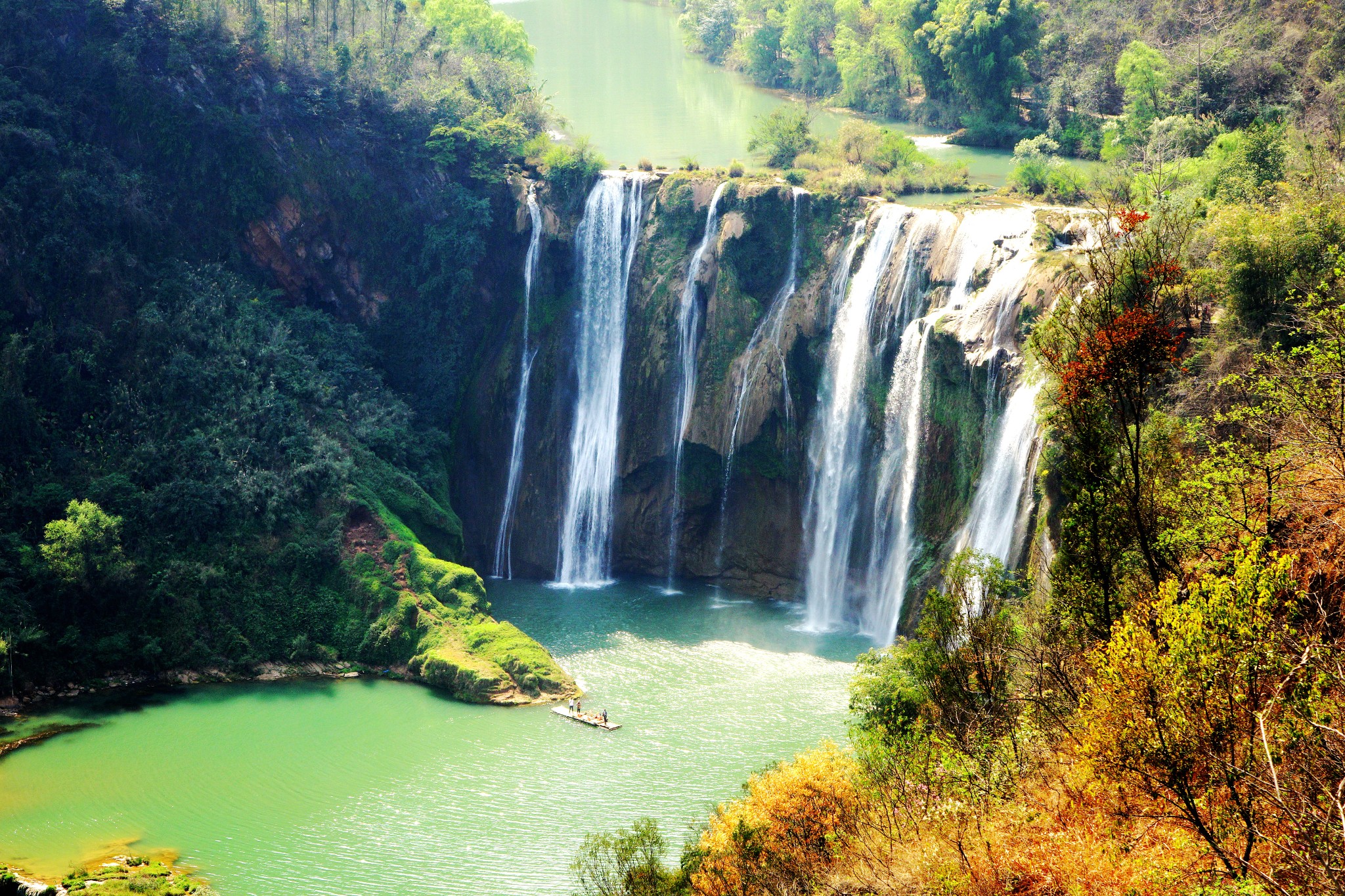云南少数民族众多。罗平地区,是布衣族居住的地方。九龙瀑布是九龙河上最具盛名的大瀑布群,当地布依族群众一向称之为“大叠水”。据说,每年的农历二月二、三月三,分别是布衣族的对歌节和泼水节,人们会来到瀑布边组织活动。