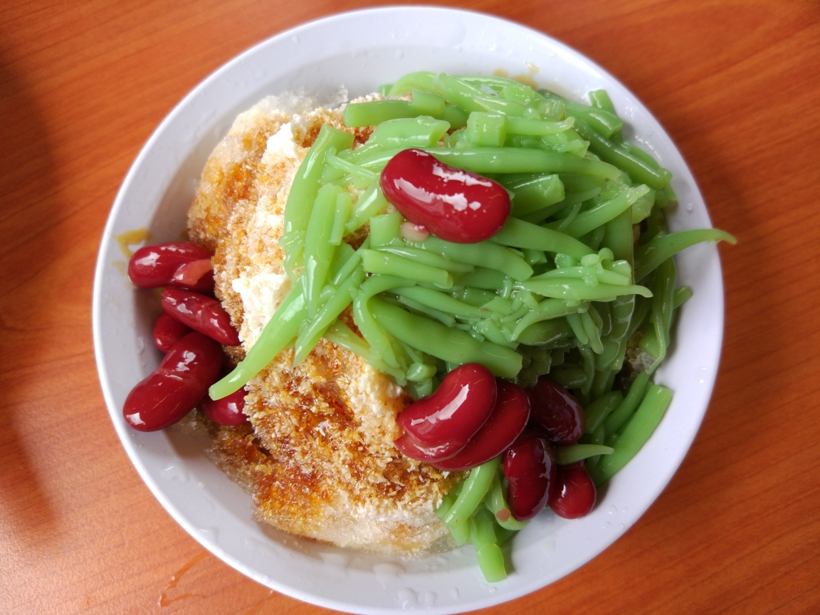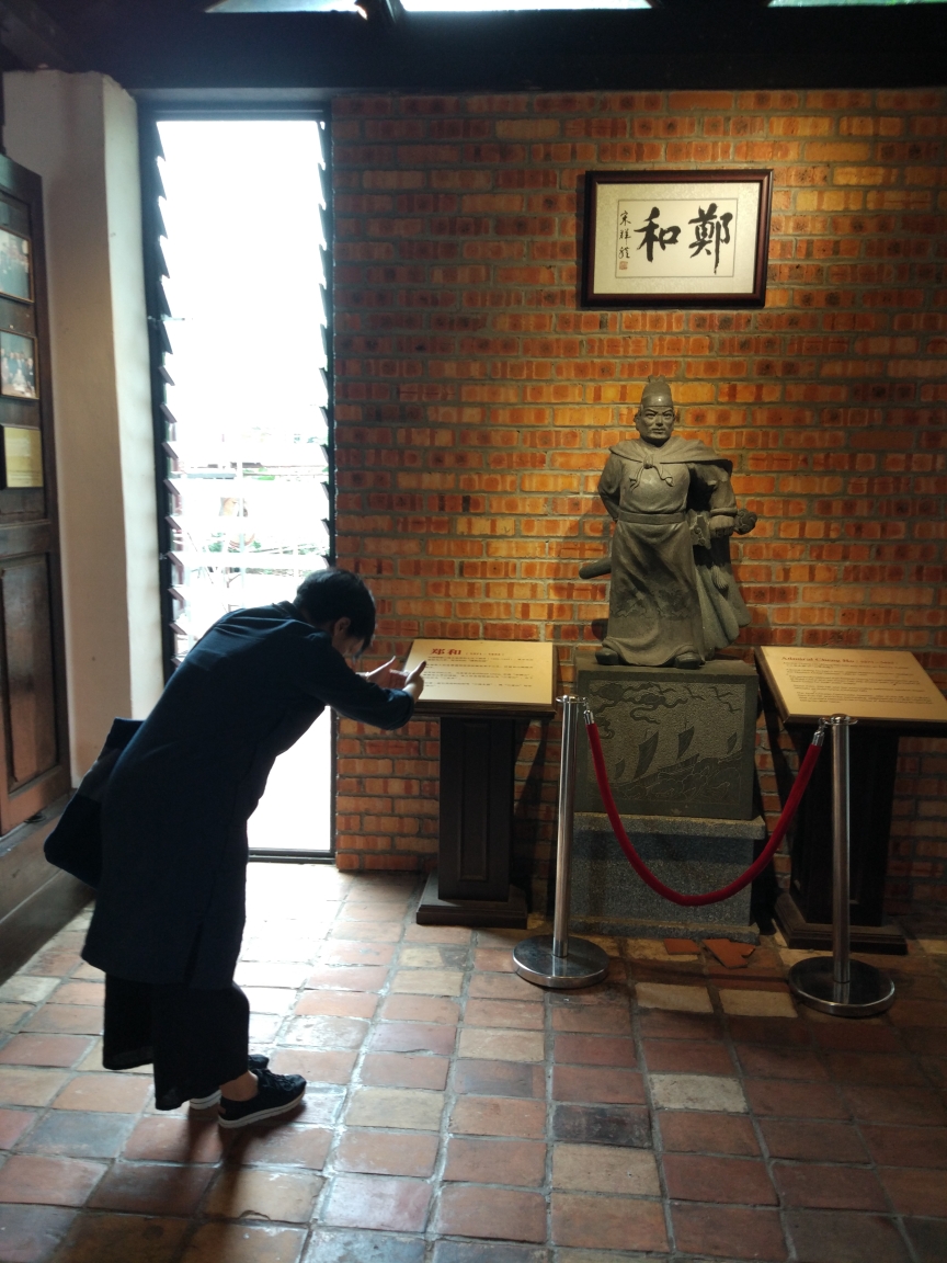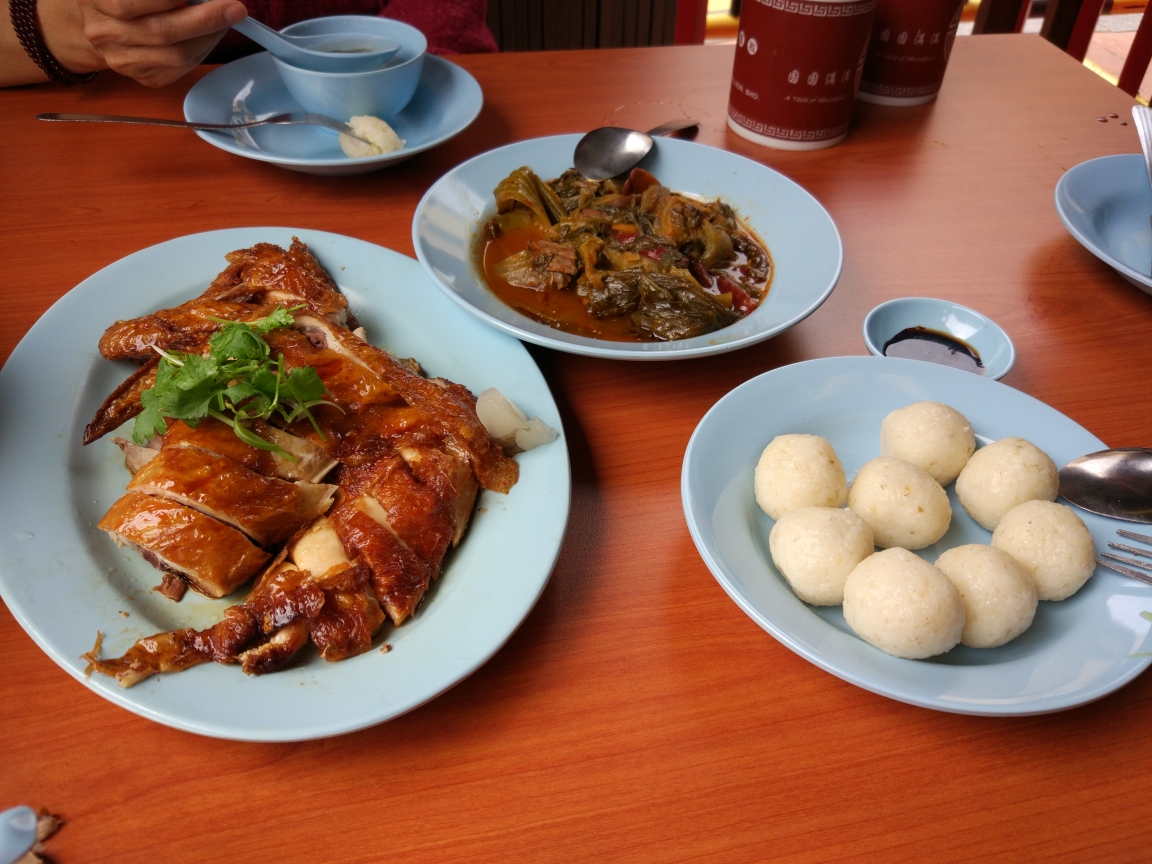 到达机场后被告知飞机要延误1个小时,没办法我们找了个KFC边吃边等。这里KFC的番茄酱和辣椒酱就放在餐厅柜台外的机器里,按需就取,只要像可乐机器一样往下按住酱汁就会流出来非常方便和环保。看着时间差不了,就开始过安检。槟城安检非常简单,把随时物品放进机器扫描,男士要额外解下皮带扫描。由于我最近体重下降了7公斤,腰围也相应缩小了4厘米,解下裤带后裤子直往下掉,所以只有一手提着裤子一手拿着随身物品到旁边再系皮带,狼狈不堪。但突安检人员想我摆摆手,拿着我前一天才买的雨伞说这不能随身携带, 我问为什么?他指着我雨伞尖尖地部位说,这太尖了说着又比了一个刺人的动作,并让我去柜台办理托运。我想就20块钱的东西不用那么麻烦,我就对他说雨伞我不要了,就放在这里吧。他于是就把我的雨伞给没收了。到候机大厅又晚点了近20分钟才登机,由于是小飞机我们只能走到飞机面前从旋梯登上飞机。起飞后一会就飞到了马六甲海峡的上空,海面上熙熙攘攘的货轮在航行,阳光照射在平静的海面上波光粼粼,折射出白色的光芒。又飞行了20分钟我们就要在马六甲国际机场降落了。说是国际机场实际上就和我们的长途汽车站一样,候机厅很小,只有几排座椅,座位旁边只有一台行李扫描机,而且是没在工作。机场外面没有公交车,候机厅有一个出租车服务台可供登机叫车。我走到出租车服务台向一个工作人员展示了目的地,他就在一个单子上写着什么,突然问我要不要收据,我说不用。他说那就走吧,他说完就领着我们到了外面的一辆车前说上车吧,这时我才明白他就是司机。原来每个司机把自己车停在外面,自己进入候机大厅排队等候乘客,轮到谁谁就去登记簿上登记,登记完就自己开车把乘客送至目的地。一路上他用很重的咖喱英语说因为这里离吉隆坡国际机场很近所以每天只有两个航班,这里离市中心有16公里。我一边费力地听着他的话一边脑子里想着我刚才并没有问他多少钱,到目的地时他会不会狮子大张口,即使他多收我钱我也没办法。就这样带着忐忑不安的心情到了酒店,我连忙问他多少钱,他说35,我悬着的心总算放下来了。我给他了40说不用找了,他高兴的说谢谢祝你玩得开心。看来我总算喜欢以小人之心度君子之腹啊,这个世界还是好人多呀。我们进了酒店老板很高兴地看了我的护照,并领我到厨房指着一麦片和牛奶说这些都是免费的,你们可以随意品尝。随后他把我们领到了房间就下楼去了,房间很大很干净,外面还有一大个露台可以乘凉喝茶。但我们没有心情享用这些,我们脑子只有一件事情那就是赶快出去找吃的,因为太饿了。我们迅速放下行李下楼和老板打了声招呼就直奔附近鸡场街的鸡粒饭饭馆。鸡粒饭就是把鸡汤里煮熟的米饭弄成乒乓球大小的球形饭粒。通常标准套餐是在每个人的盘上放五个。但是也可根据个人食量选择饭粒数量。白白的鸡饭粒,乍看之下以为是鱼丸,咬下去却是柔软而不松散,油香浓郁却不腻味,外温内热却不烫舌,配合凉凉的鸡肉吃起来,在这暑期高涨的热带地区,一切都恰到好处。我们吃的这家店在古城有3家分店,提供白斩鸡和烧鸡两种。由于我们在槟城吃过了白斩鸡就像试试烧鸡于是我们就点了半只烧鸡和十粒饭团小吃点了份蒸鸡脚,腌菜炖猪皮和一个白菜汤。冷饮点了椰糖晶露,晶露就是那种绿色的一条条看上去像面条样的东西,咬起来感觉QQ的,加上咸咸的椰浆,混着绵密的冰沙一起,底部盛满了美味的黑糖,还有南国特有的大红豆,在炎热的夏天非常凉爽解暑。不一会菜就上齐了,鸡肉嫩而多汁不柴,饭粒有着淡淡的肉香味,卤鸡脚皮烂而不腻,腌菜酸而爽口正好可以化解鸡肉的油腻,白菜脆而带甜,汤也很鲜美。由于太饿了我们狼吞虎咽地全部一扫而光,吃完还可以用支付宝支付,真实方便实惠。由于外面突然下起了雨我们就在店里休息等待雨停。不一会雨过天晴我们走了几步就到了马六甲的荷兰红屋,因为人很多我们就去了郑和庙。郑和庙到红屋走路要20分钟左右,我们一路上走在骑楼里边走边看马六甲的古建筑和华人开的各种商店。郑和庙不大但很精致,里面有一口小院里有一口“郑和井”。据说当时共挖了七口井,目的是给舰队提供洁净的饮用水,我们只见到一口,已经被列为马六甲当地的国家珍贵财产,并设有重要保护,盖上铁网,被一把铁将军锁起来了。