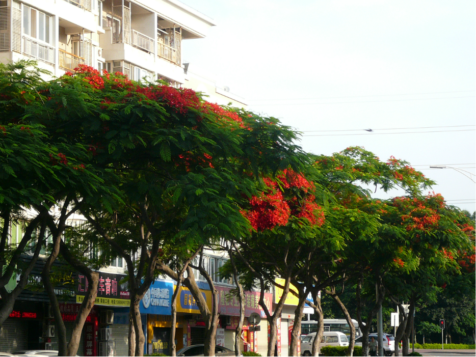 无论是市区还是海边,无论是路旁还是公园,到处都可以见到凤凰 树的身影。