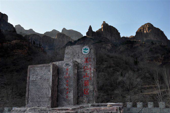 万仙山景区是南太行风光的典型代表,太行之魂的集中体现,景区内既有雄壮而苍茫的红崖绝壁,又有妙曼而又秀雅的山乡风韵,集雄、险、奇、秀、幽为一体,各类景点有200余处,主要有红岩绝壁大峡谷、影视村、绝壁长廊、天池、莲花盆、白龙洞、喊泉、日月星石、黑龙潭瀑布、五峰林农场、磨剑峰、丹分沟等。绝壁长廊长1250多米,完全由人工开凿,被誉为 “世界第八大奇迹”。