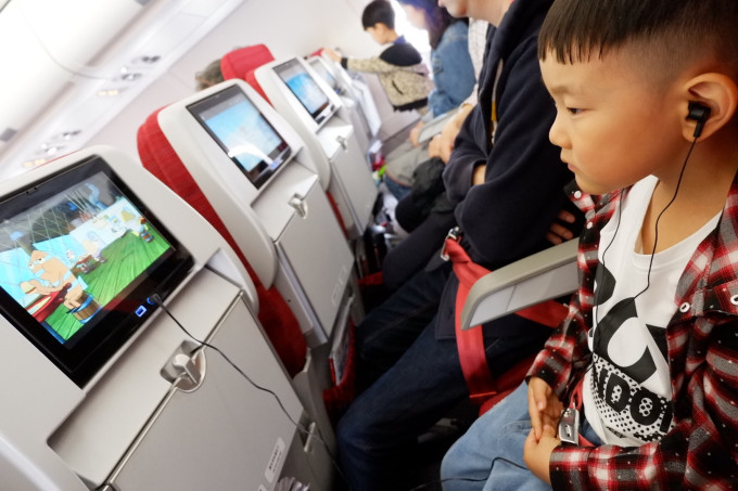 提前致电香港客服定了座位和儿童餐,只想着要三个相连,忘记了靠窗,小朋友表示稍显失望,不过马上被动画片吸引了