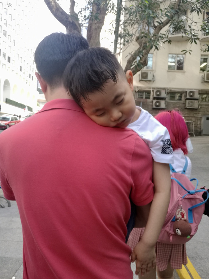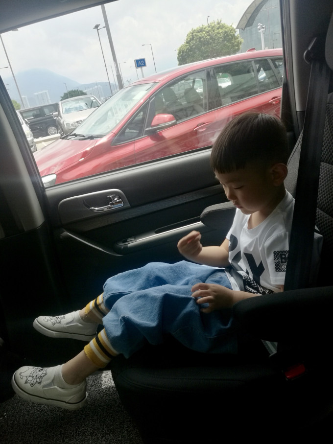 从中环地铁站走到缆车站,大概步行8分钟左右,但是兴奋了一天早晨4点多就起床的小刘睡着了,我们俩只能轮流抱,嫌麻烦不带推车的老刘尝到了自己种下的苦果。。。最后我们俩实在都抱不动了就把他叫醒了,其实人多没车又热的这几天孩子还是挺受罪的,但是真的已经乖了