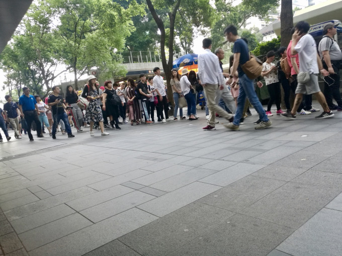 在蚂蜂窝上定的太平山顶快捷通道缆车票,16:30中环地铁站皇后像广场集合,一出来就被排队的人群惊到了,其实五一出行已经做好人多的准备了,所以才在马蜂窝上提前预定的快捷通道,但是没想到这么多人,16点多我们就到了,就在这里排队