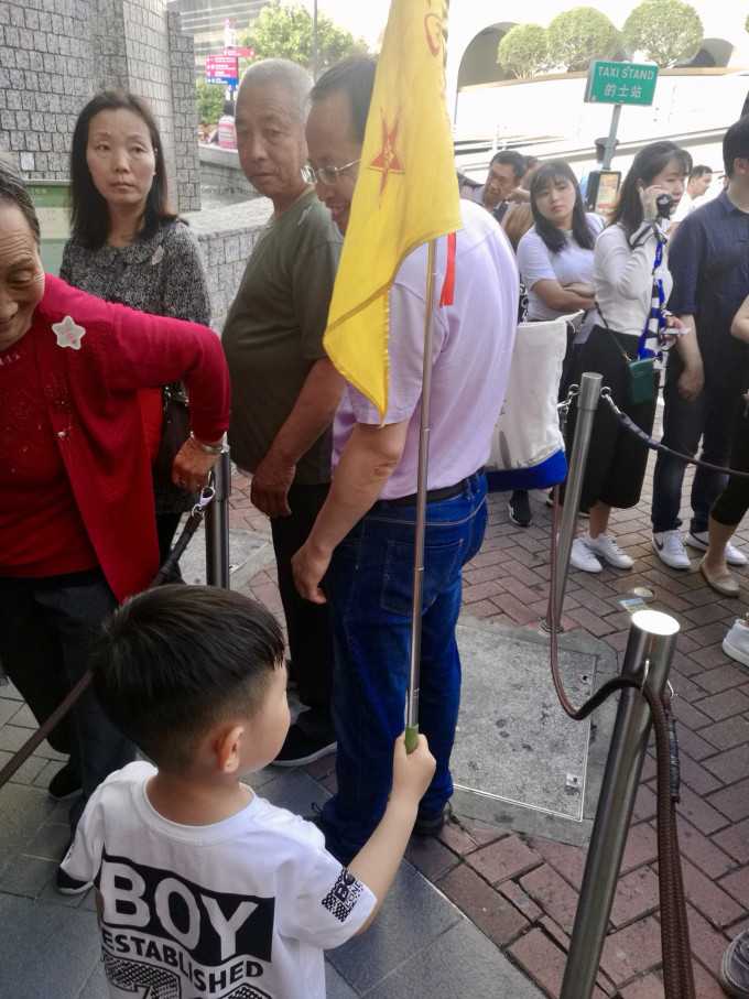 由于带着小刘走的慢,我们是这团的最后,所以导游把小黄旗交给了我们做标识,小刘导举的很开心