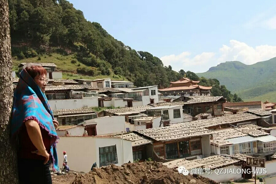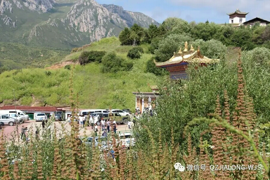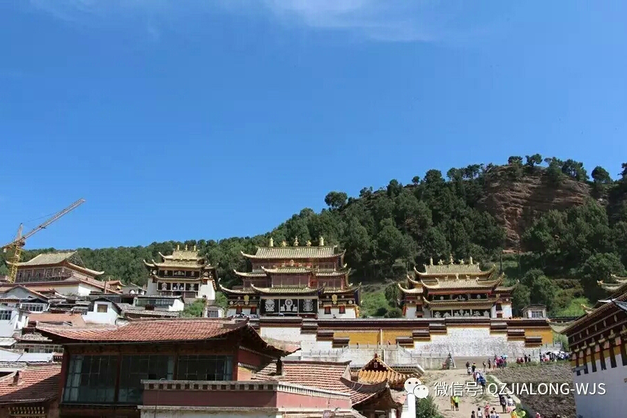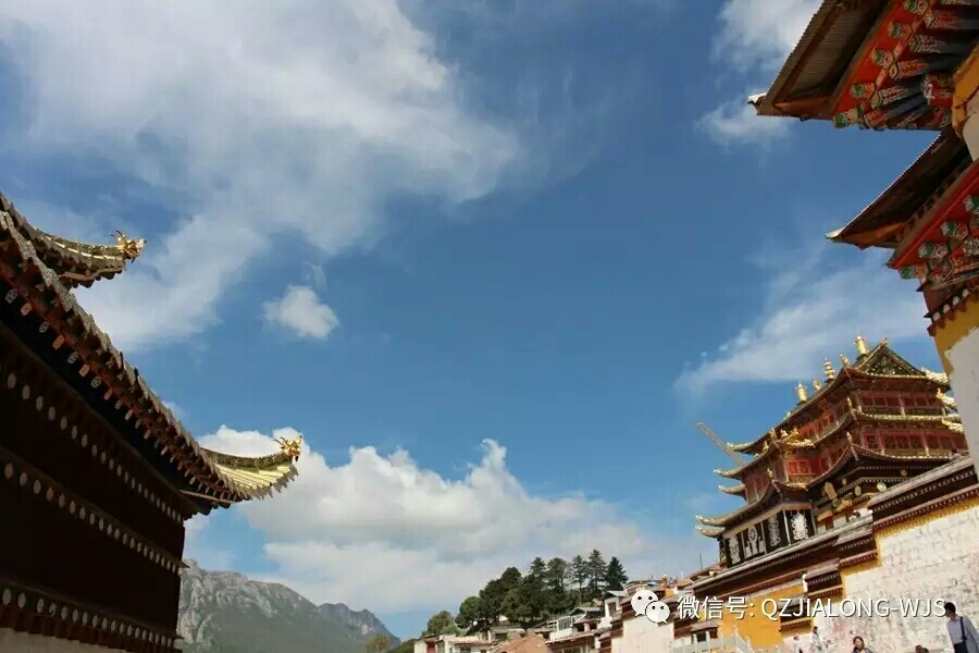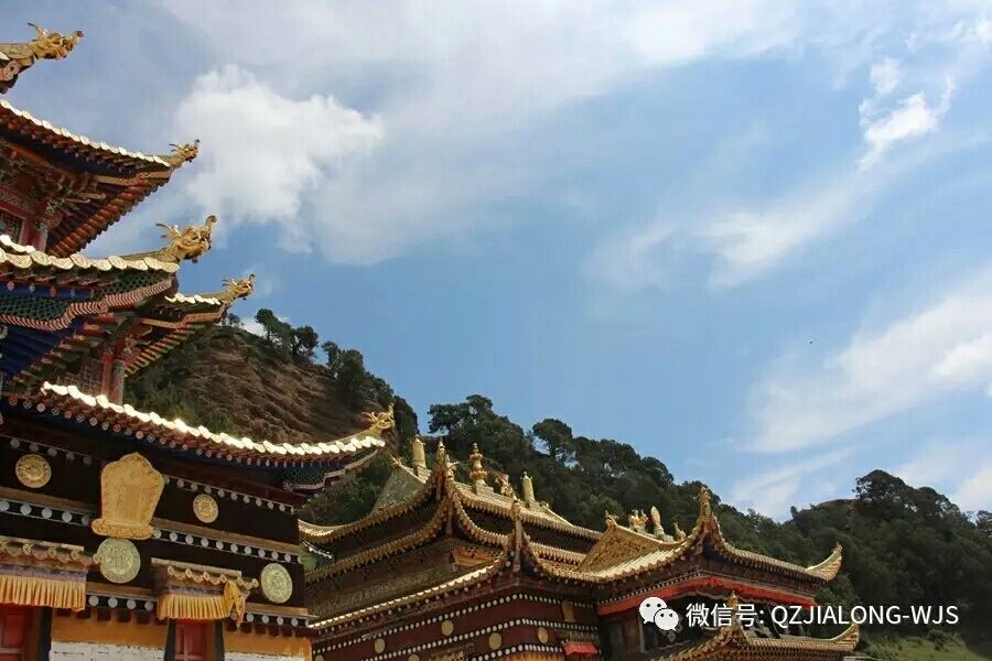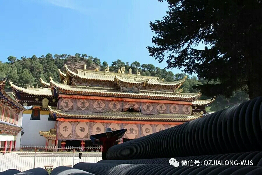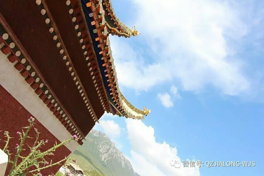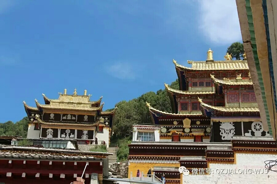 进的寺院里面,听到导游讲解寺院的地理位置时才知道这条小河居然叫“白龙江“因为白龙江穿镇而过,就把郎木寺镇一分为二了,也正是这一分,才有了南岸四川境内的“格尔底寺”,北岸甘肃境内的“达仓郎木寺”,两寺合称郎木寺,四川境内的是银顶的,甘肃境内的是金顶的。