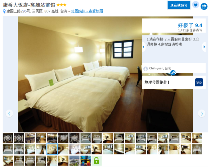 推荐理由:这家可以说是相当推荐了。每次去南部都会选择康桥,首先,早餐、下午茶、晚餐,几乎全天供应自助餐,如果犯懒了完全可以在酒店解决。其次,房间干净,这个不多说了。最后,几乎每家店的地理位置都很方便,顺便说一句,在高雄,真的是住在美丽岛捷运站附近最方便,因为是两条捷运站的交汇处,去哪里都不用换乘。