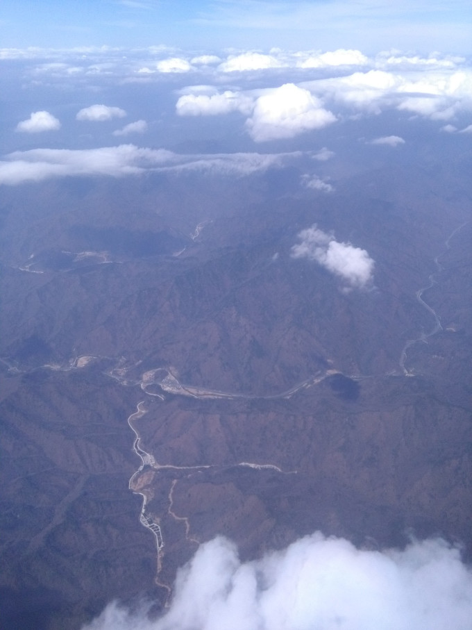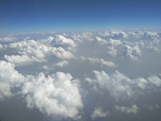 飞机高飞入云,一望无际的天边,洁白的云朵,似盛开的花朵,透过窗子腑看山河大地,山水相连,云里雾里,视觉享受真的惬意无比。