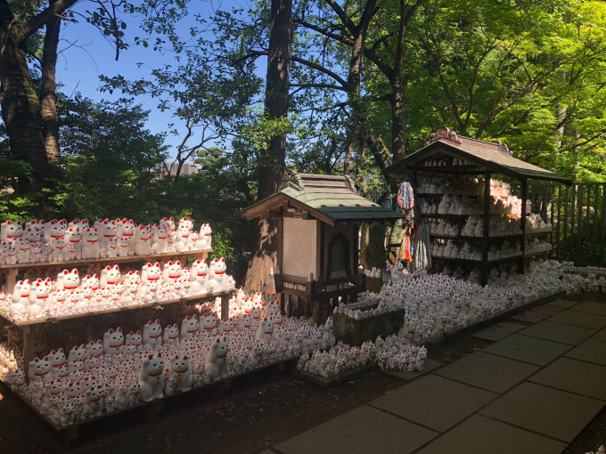 寺庙非常古朴,人非常少,非常安静,是一个适合安静逛逛的地方,供奉了许许多多招财猫。入乡随俗,也求了招财猫回家,不仅仅是招财,也保平安,安产,转运等等。看到了来自世界各国的游客挂的祈福牌,我们也挂了一块。希望一切顺遂~