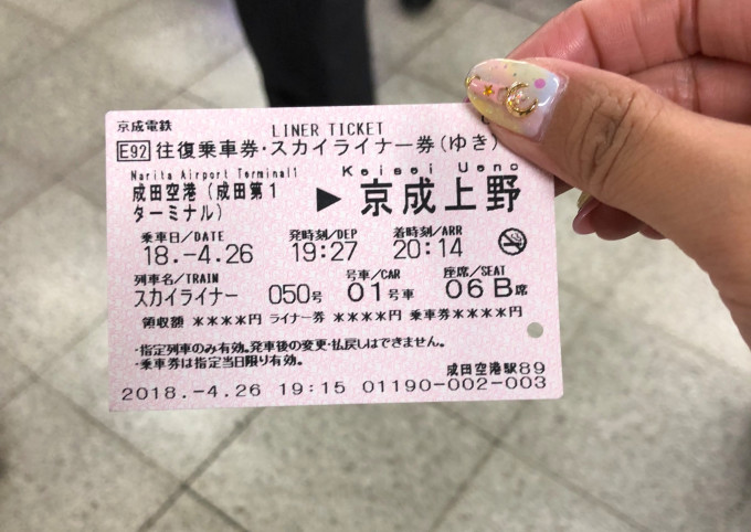 到东京的时候已经快要晚上七点,出发前就考虑到时间比较晚,到酒店要坐很久的车,那就太晚了。最后考虑搭乘skyliner从机场到市中心。skyliner号称是到市中心最快的交通工具,40分钟就能到上野。相对的skyliner的票价并不便宜,提前26天可以再网上购买来回折扣票(http://www.keisei.co.jp/keisei/tetudou/skyliner/tc/ae_outline/index.php)原价票是单程2470日元/人,打折票是来回4300日元/人,还是便宜不少的。提前在网上刷卡买好,会产生兑换号码,在机场的skyliner服务台就可以兑换当天的车票,我们同时还选好了回程的车票时间。