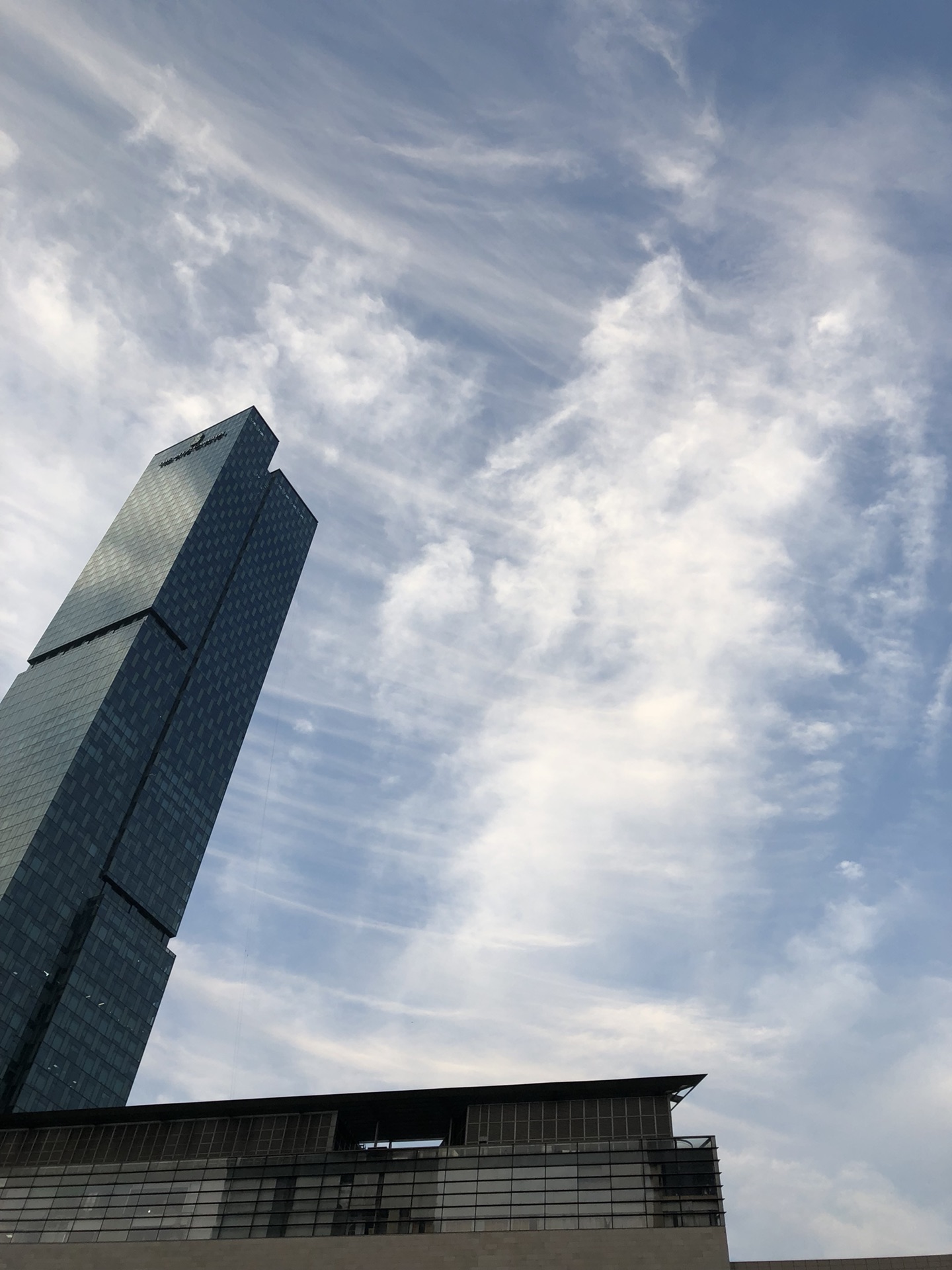 虽然顶楼望出去天空有些灰蒙蒙,但出门抬头看的时候,还是被一抹蓝色激荡得内心雀跃。
