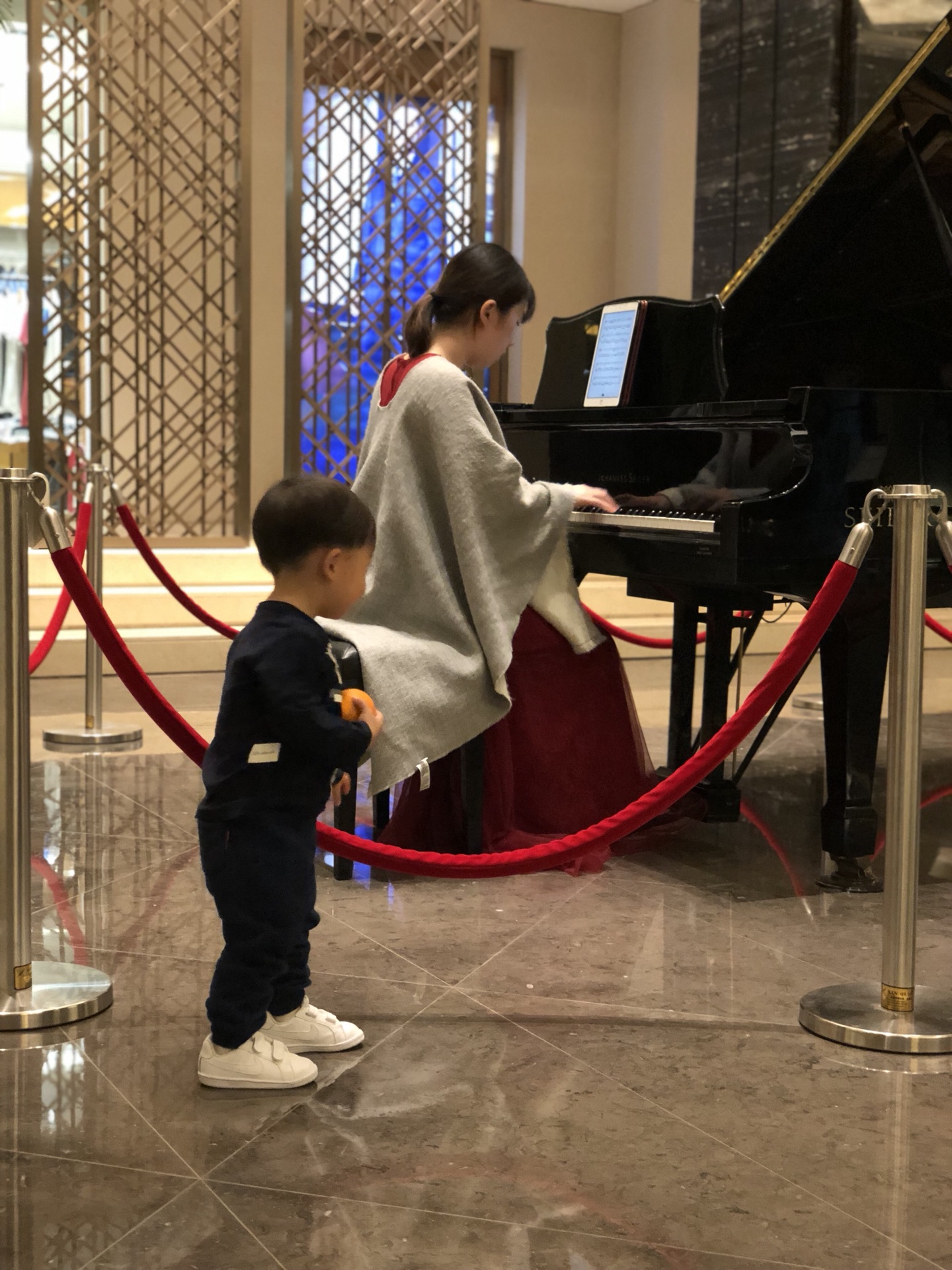 楼下大厅始终有人在演奏钢琴,汤圆一直腻在旁边,真希望他以后能喜欢钢琴。虽然后来看到喷泉以后,注意力就转移了。