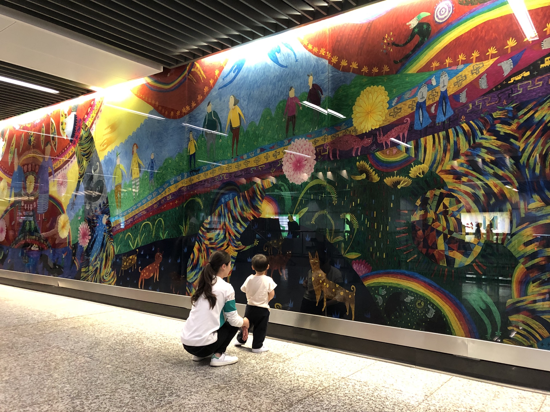 很喜欢地铁站这幅画卷,充满了无法临摹的童真与稚气。后来发现这居然是一副刺绣以后更是惊叹不已!