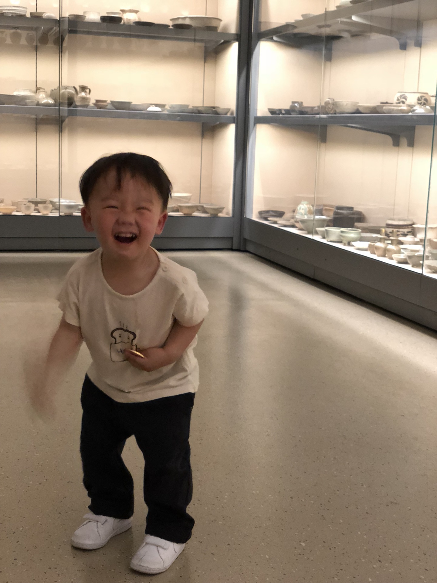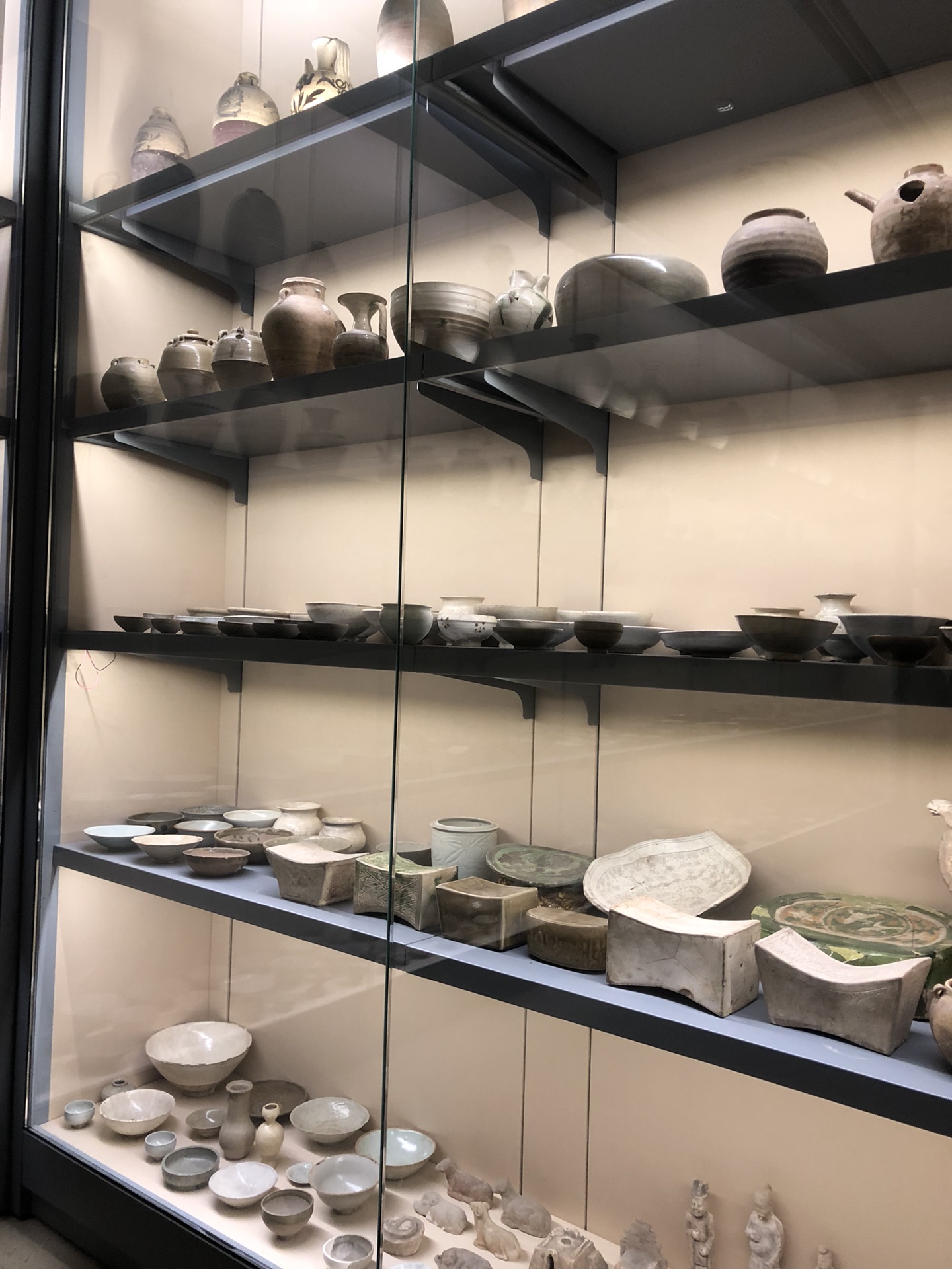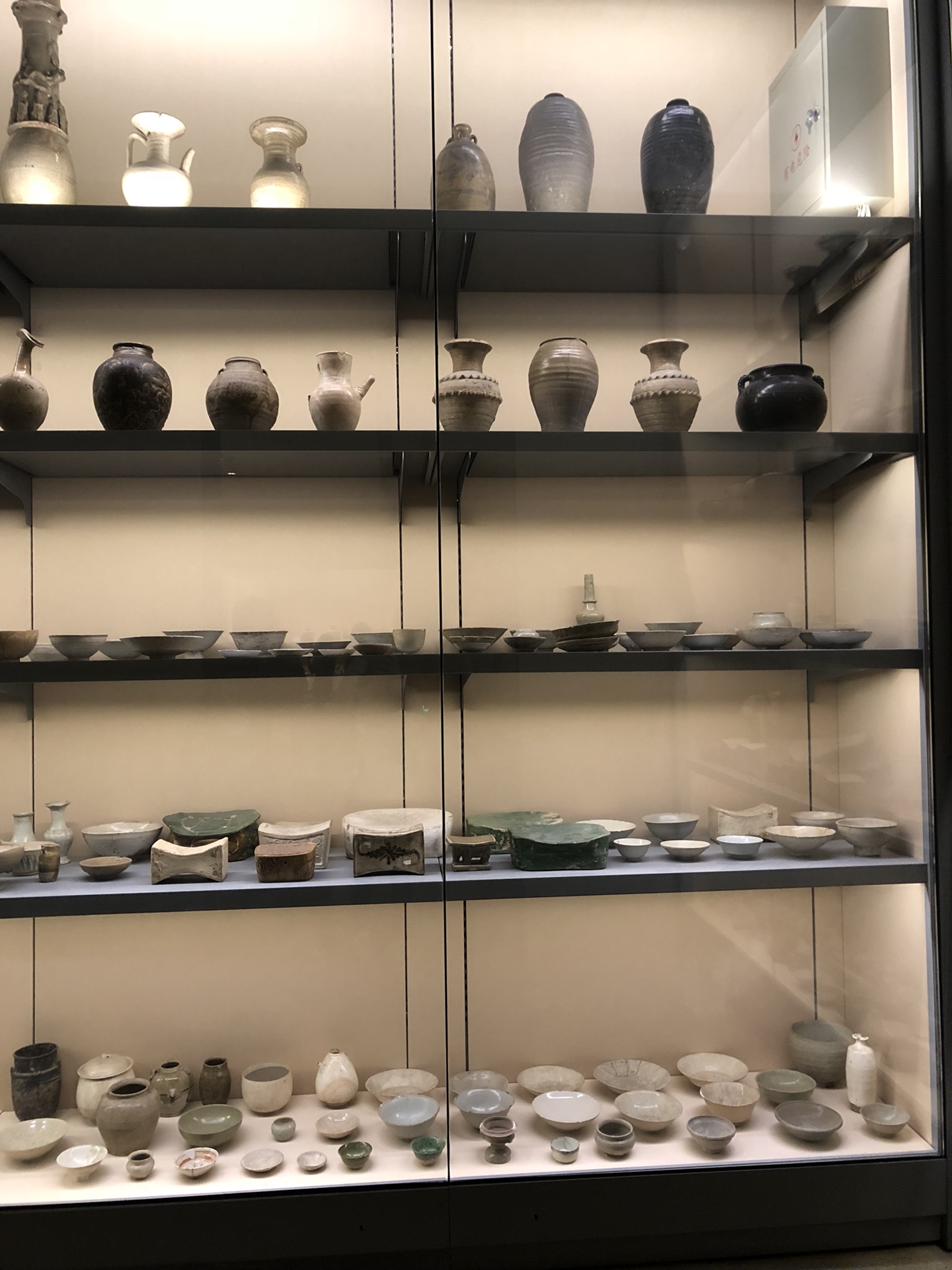 这个隔间因为没有什么出众的藏品,所以没有人。嘟向我介绍说,南京博物馆就是豪就豪在,别的博物馆只有一两件的藏品,他们跟卖瓷器的似的有一大柜子。