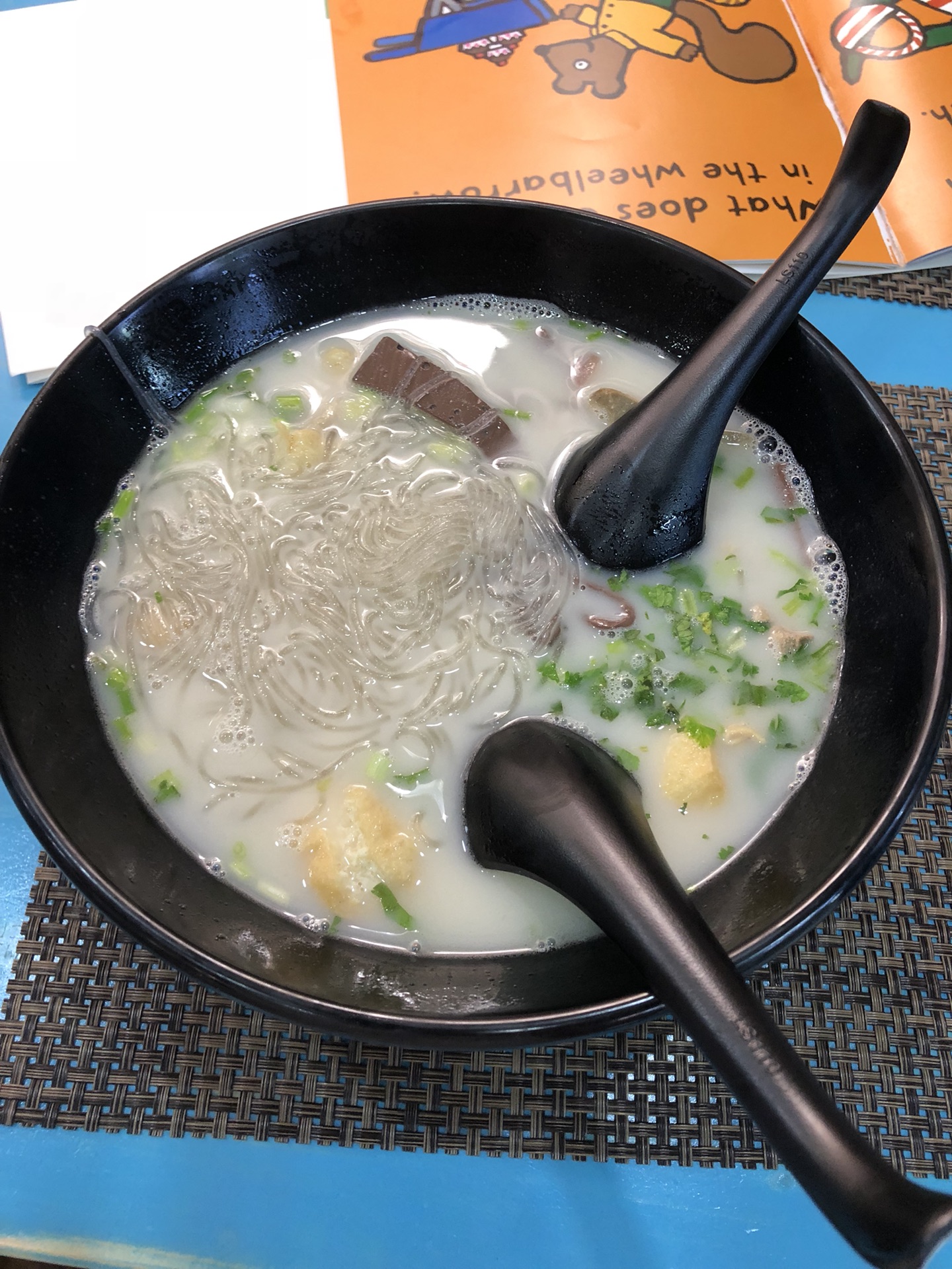 这家店没有宝宝椅,也不适合带小宝宝去,汤圆还后脑勺朝得从座位上摔了下来,而且因为店在街边的地下一层,所以整个通道里都有点刺鼻的烟味,环境大概一星。但陆续吃过其他店的鸭血粉丝以后,才真正体会到这家鸭血粉丝有多好吃!浓郁的汤汁,绵懦的粉丝,筋道的鸭肠,为了吃这家的鸭血粉丝我也要再来一次!!鸭血粉丝五星!!