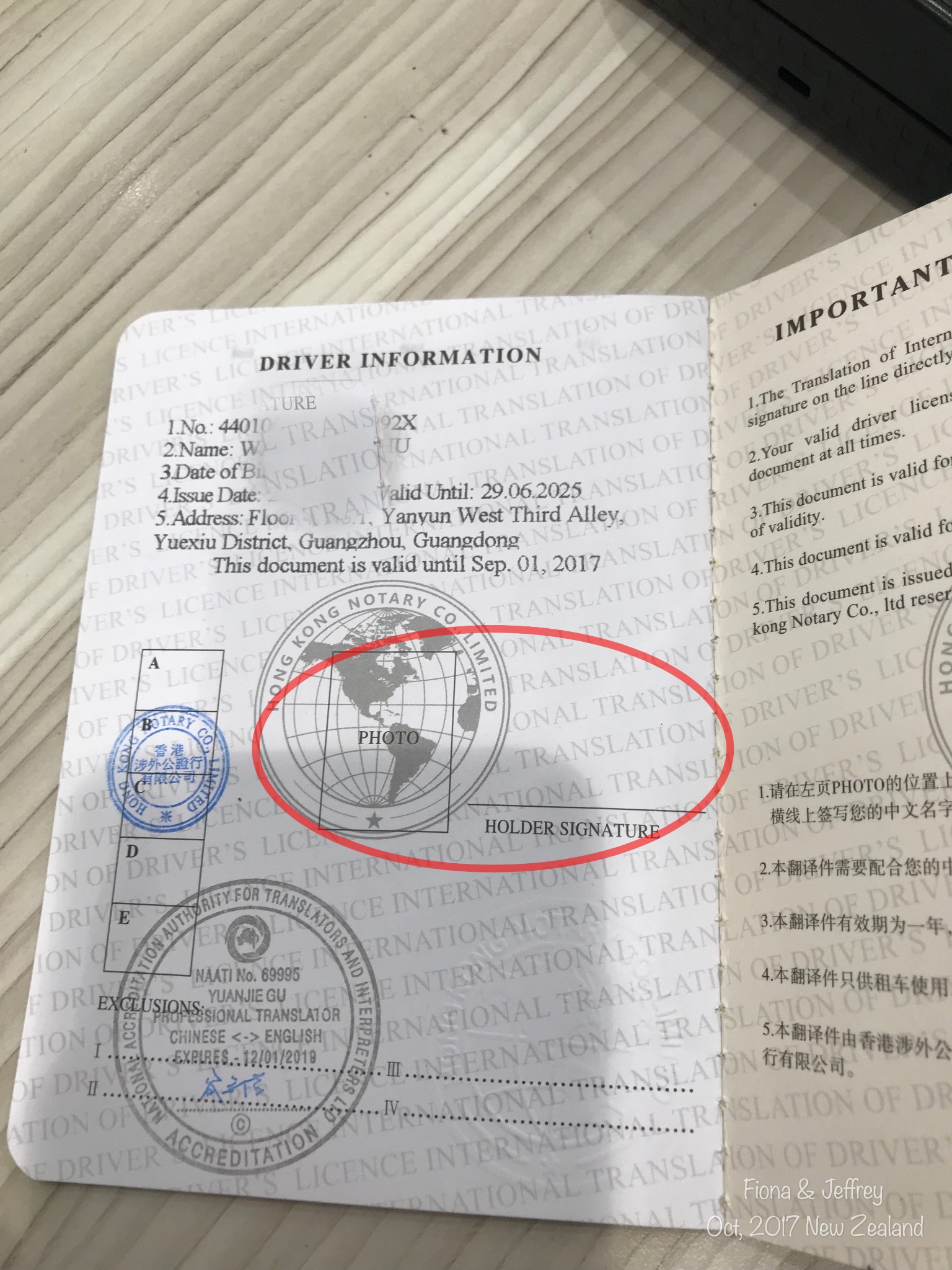 4.国际驾照翻译件信息页必须要贴有照片和持证人签名,否则也无法通过审核。