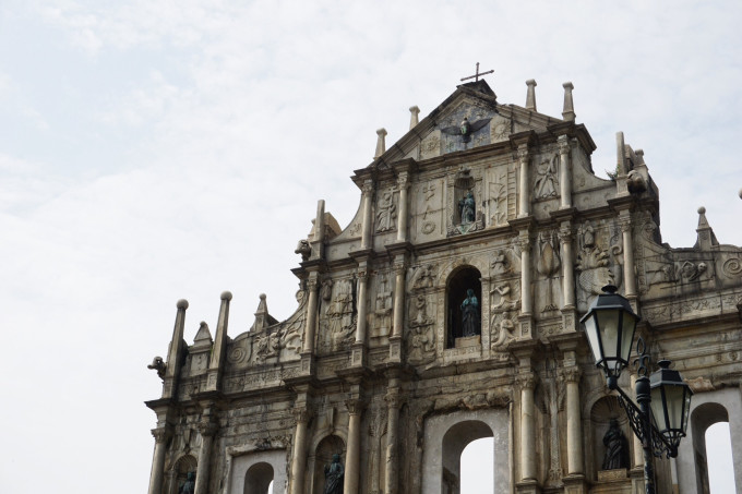 逛完议事亭前地和玫瑰圣母堂之后,当然要去“只要来了澳门就一定要去打卡”“大家都在各种拍照”“我也跟着大家拍照虽然不知道在拍什么”的大三巴了!因为我出发当天脸又过敏了,左脸一坨红,右脸一坨红,所以全素颜,连防晒都没有涂,这次澳门之旅也很少正面照了,拍正面的都是各种遮遮掩掩。也没有用相机拍,太高清的照片就原形毕露了。