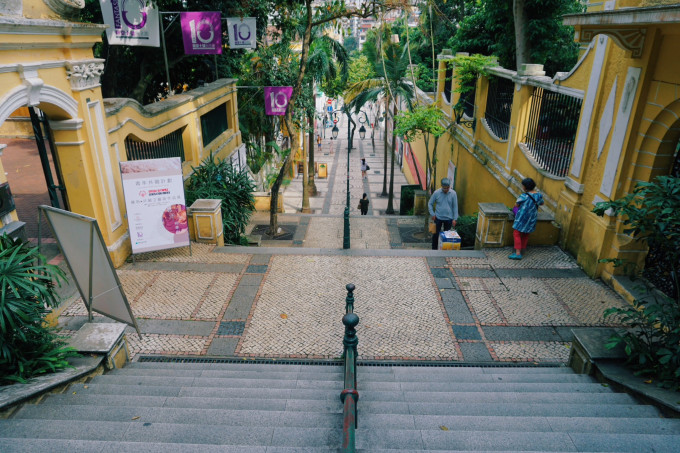 在澳门随处可见这种马赛克墙壁和石板凳,真的久违了。我小时候住的地方就是这种风格,很怀念!