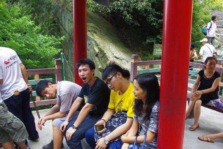休息够了,终于开始漫漫长的上山路了,等车回去镇上又是一个悲剧啊!!等了很久,被那个大叔导游坑了,一直没车回去,我们还赶着下山的呢!!回到镇上,拿上行李,坐上大巴,下山去了......这代表着我们的庐山之旅到此结束了!!