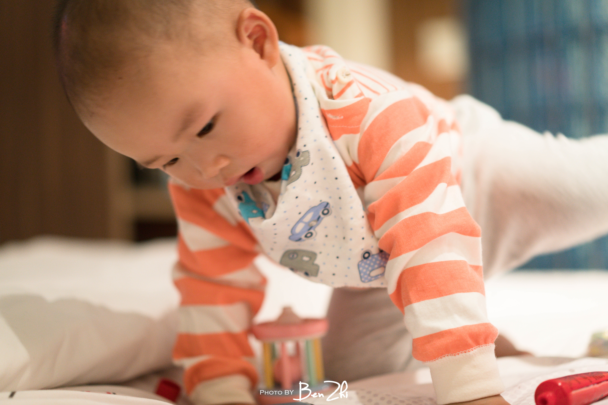 到了已经10点多了,小植植一点睡意都没有。我就拿起相机帮他拍下在Bali的第一组照片啦