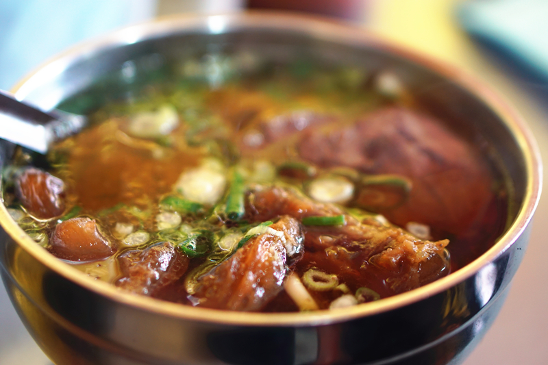 吃客们一边把网络上的推荐当做参照,一边也会心存怀疑这样的店会不会人太多?会不会名不符实?我也是抱有这样的心态,于是又听从一位台北交换生的推荐去了一次“金春发牛肉面”——这是一间有百年历史的老字号,以清汤牛肉面为特色。