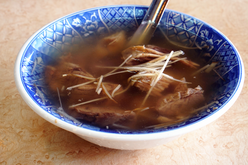 从淡水回来,坐上捷运红线,下车以后走了20分钟才找到这家店。当时估摸快下午两点了,所以没什么人。服务员们正围坐在一起打算吃饭,见到我们这桌客人来了,马上又来招呼。一看上去感觉就像开在邻居街坊身边的那种店,小小的,很有人情味。服务员年纪也都比较大了,都是阿姨伯伯这样的年纪。牛肉选取的就是普通的部分,所以没有什么筋,没有煮得很酥烂,但还算好嚼。汤头很赞,既有鲜味,又很清淡 。汤里有大量的姜丝,不像红烧的会让很多葱。