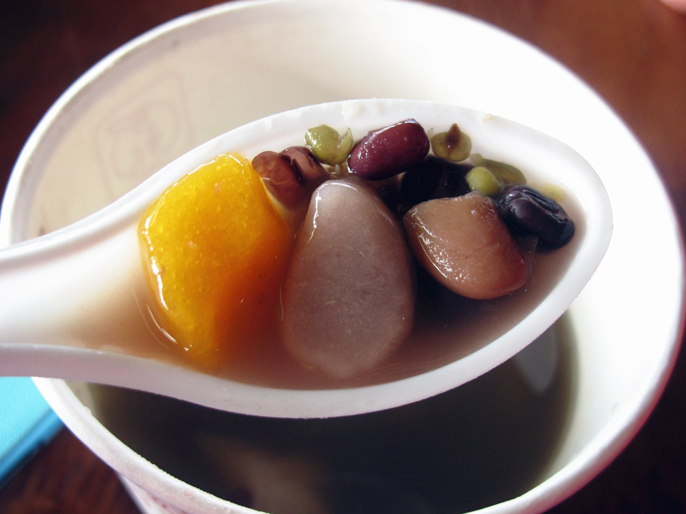 逛山城九份时,一定不会错过品尝芋圆的机会。这里有两家较为知名,常年排队的店家,一家是“赖阿婆”,一家是“阿柑姨”,司机顺伯推荐我们去了后面这家。“阿柑姨芋圆”后厨有大颗大颗的芋头和地瓜,感觉非常真材实料。综合粉圆里包含芋圆、地瓜圆、红豆、绿豆、黑豆和桂圆,它家的芋圆和地瓜圆都很棒,弹性十足,微甜不腻的口感,且带有食物天然的清香,正是我喜欢的那种甜品。