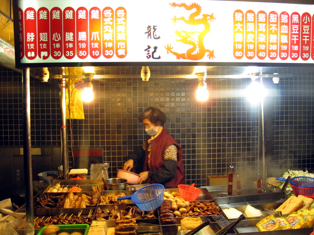 “龙记”是我在街头遇见的流动食摊,让我再记起它在哪已经不可能了。遇见它是在2014年1月1日的凌晨,那天我和朋友正看完台北101跨年烟火的表演,和一大群一同撤退的人流一起游荡在凌晨的街道上,因为很多通宵开业的店里都已经人满为患,所以我们只能在路边碰碰运气。这家小摊在路边的弄堂里,不怎么显眼,又是一位老人家在独自操持,于是我们就买了点豆腐干、甜不辣之类的做宵夜。
