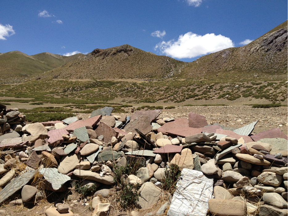 *1小时左右的爬坡到达山坡顶部可看到五颜六色的经幡