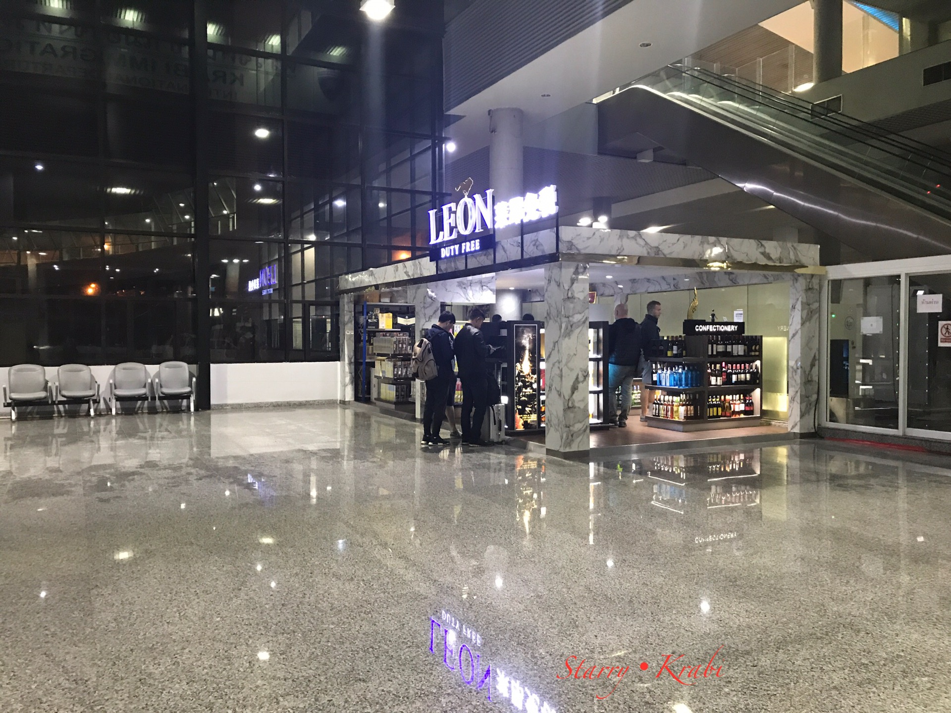 等了半天也没见行李出来,小小的机场一目了然了,啥也没有,只有角落里一家LEON免税店,除了烟酒也没别的卖,可以换钱,再就剩下大门口一个工作人员睡眼惺忪的低头看手机。找了一圈没看见提款机,问了问工作人员,她指了指外面,要出去才有。留下老杨等行李,我先出去取银子。