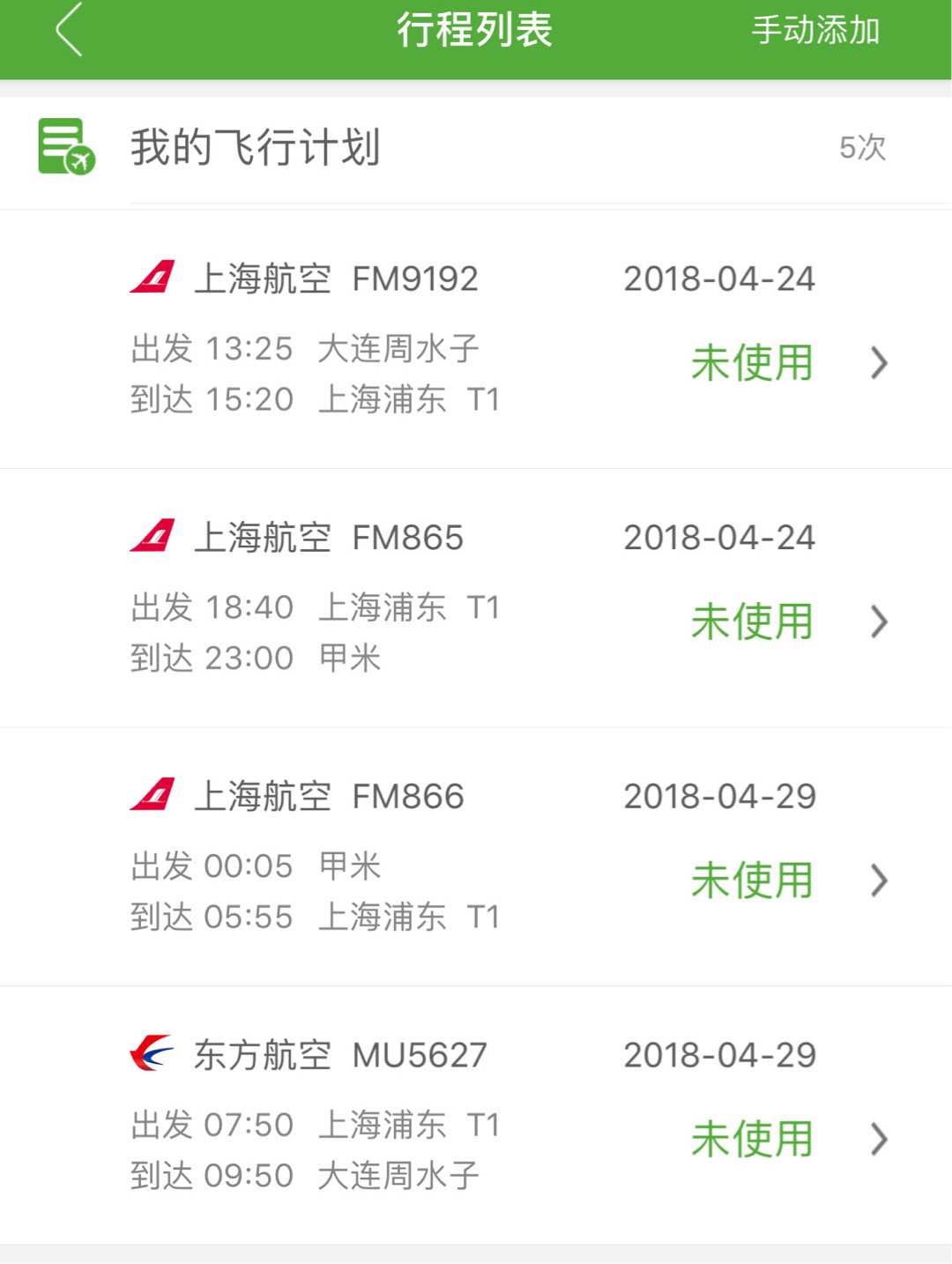 4月24日:大连~上海~甲米,天气晴朗,全程上海航空的航班,去程提前20分钟抵达甲米。