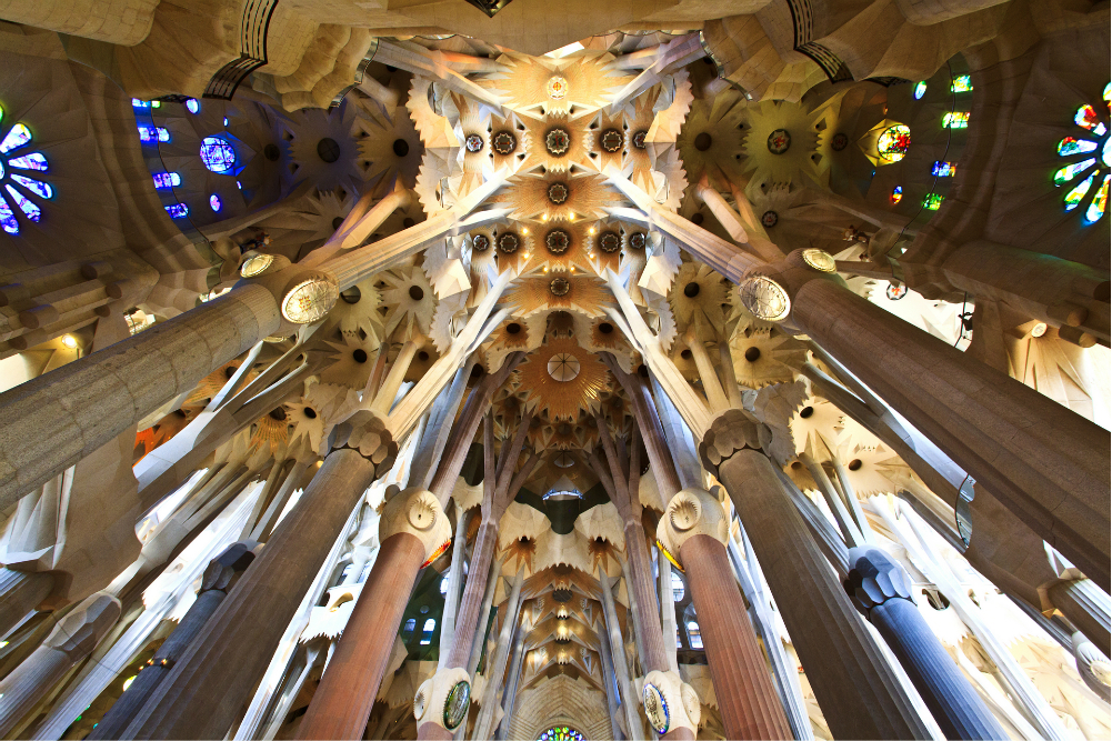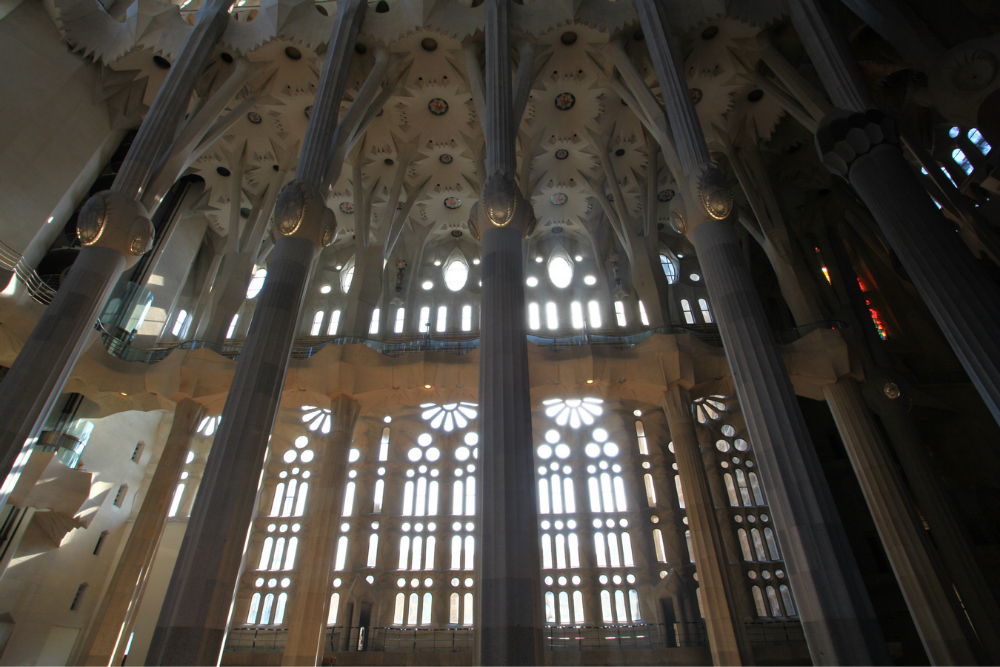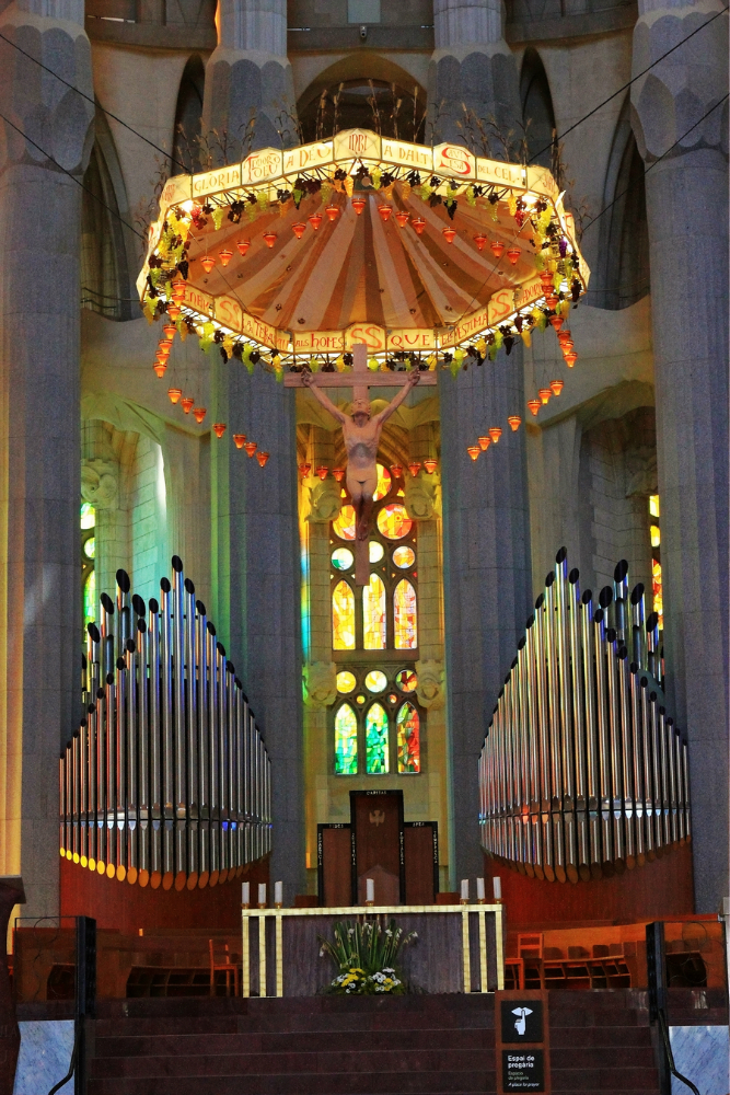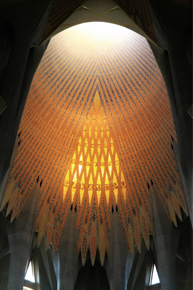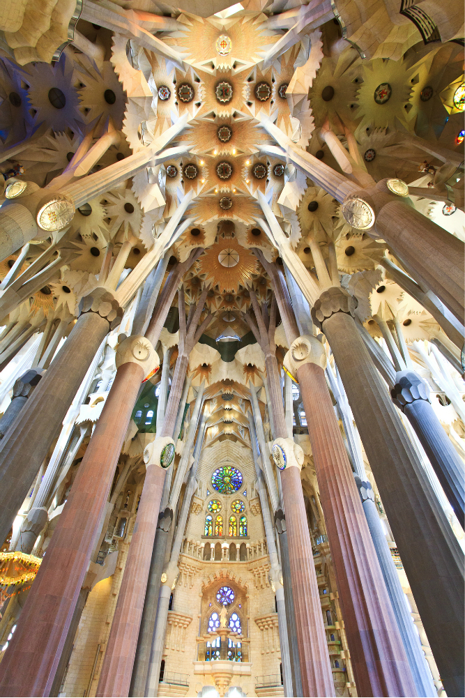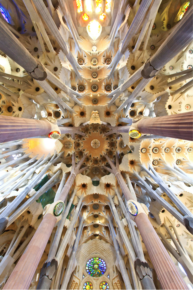 震撼啊..崇尚自然的高迪在这座教堂的设计上.不用任何直线...所有的都是曲线.曲面..