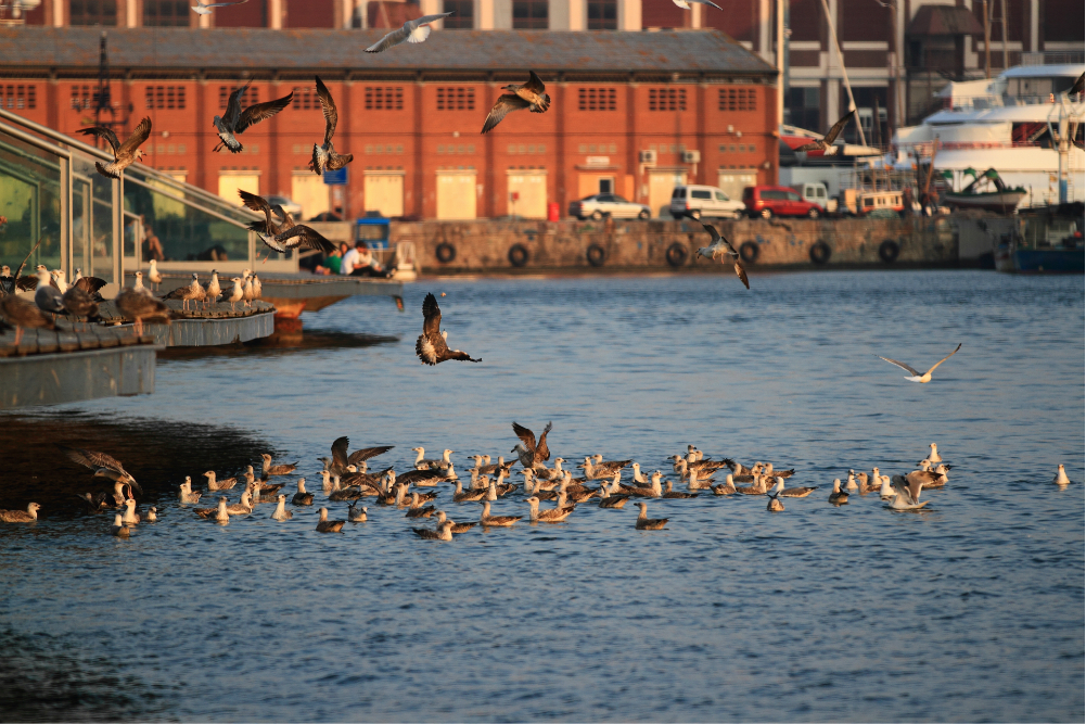 里面水果啦.海鲜啦都很便宜...瞧这帮老外吃的..一大早就这么多壳了...