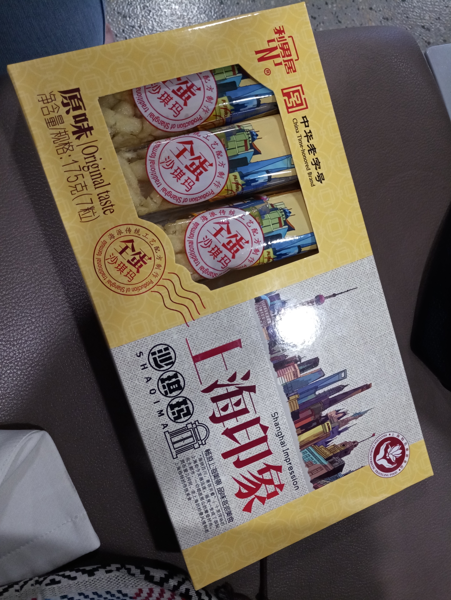 这次是乘坐吉祥航空,19:00才起飞,登机口竟然在一楼,真是LOW。饥肠辘辘啦,一楼只有一家食品店,第一次在机场买了上海特产