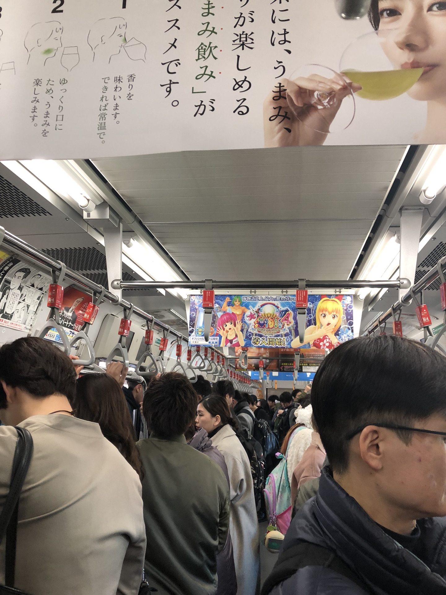 JR山手线上~人很多,可是很安静,车上贴满广告