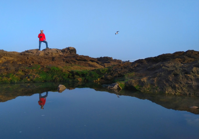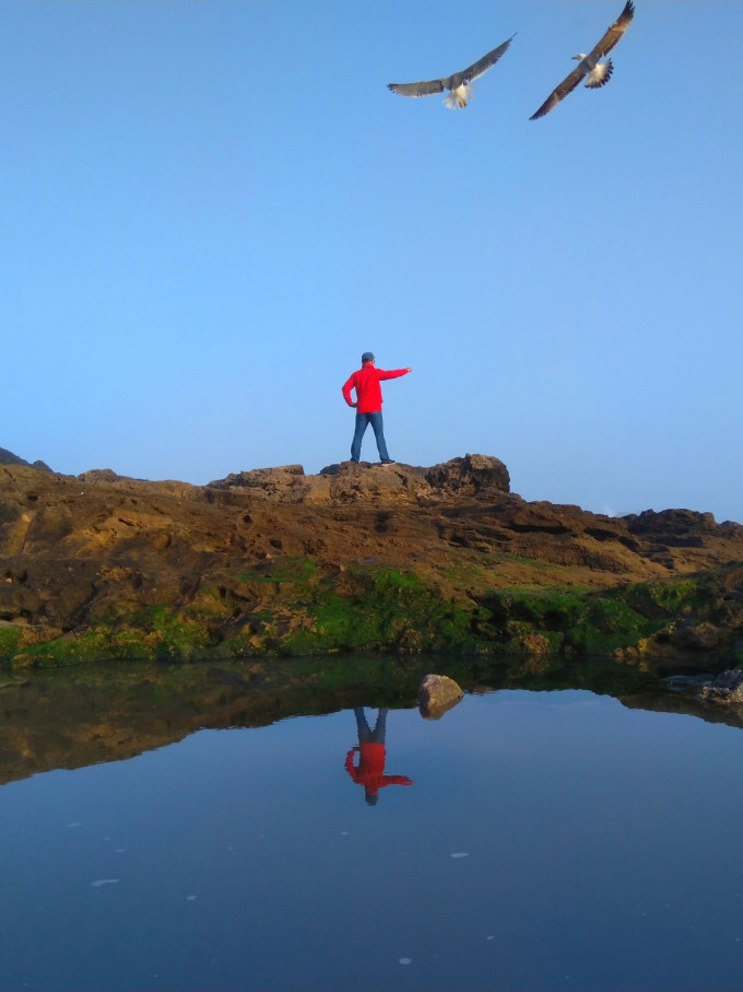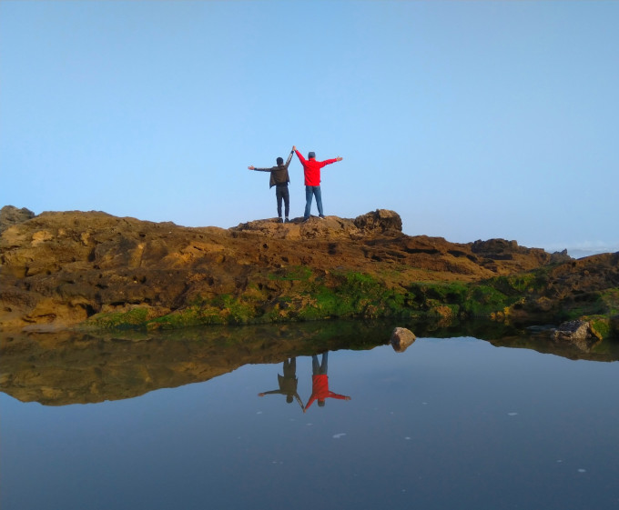 虽然水汽弥漫,索维拉还是展现在我的眼前。白色小城临海而建,被古老的城墙守护着,但它依然高昂的眺望着大西洋。退潮时来不及走掉的海水,倒映着朦胧的索维拉城,还有开心的我们。