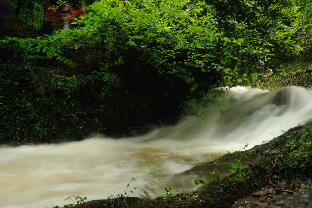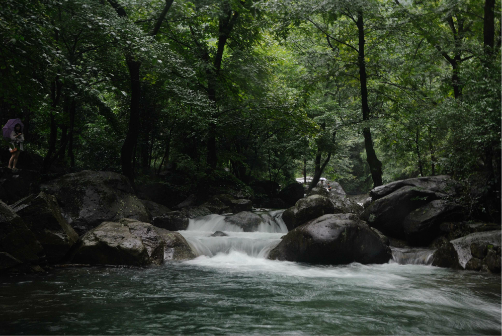 我们来得真是时候,虽说下雨,但也正是因为下雨,山里的水才会这么得大,而且这里的水很清,不像通天河与琴溪香谷的水都是泥土的颜色,这里的水清澈见底,透心凉。如果是大夏的话,相信任何人见到这样的情景都会不加思索地鞋子一扔,跳入水中好好消暑一番。