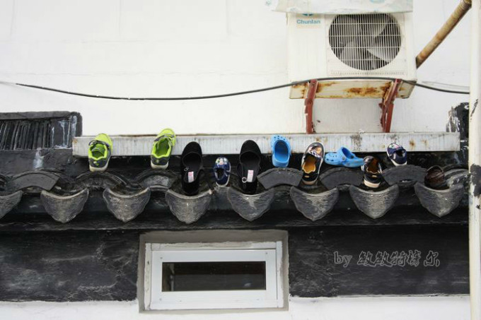 不知道为什么要把鞋晾到房顶。