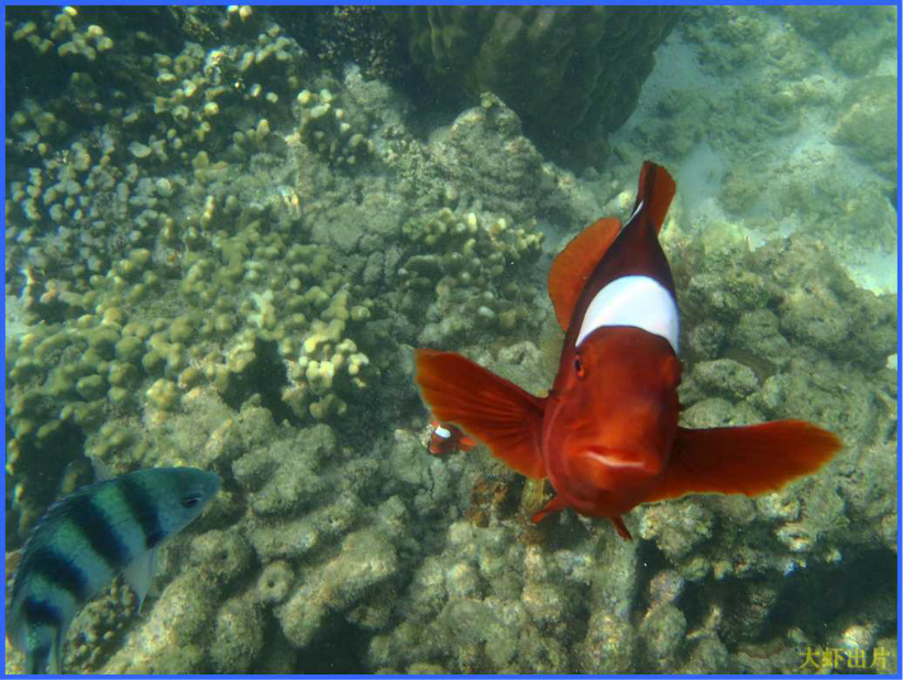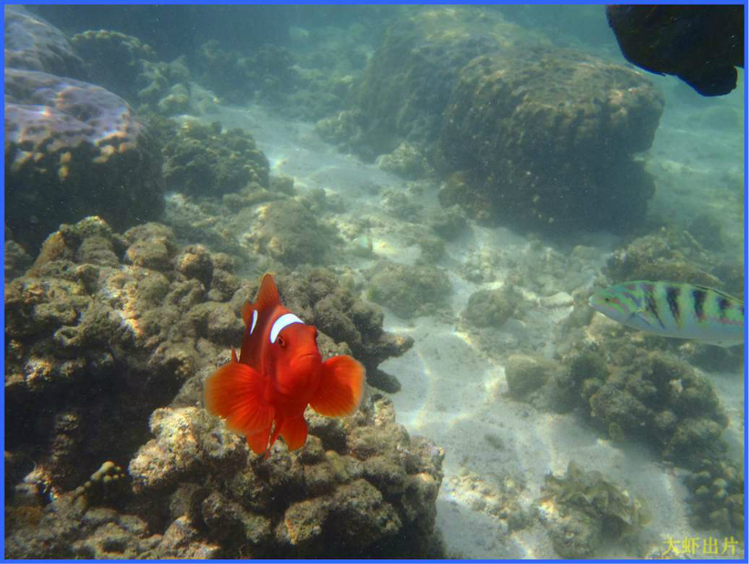 另一个Nemo,个头不大但嘴很厉害,把我的鱼食口袋另开了一个口,也在我的手上开了个口,好在没伤到真皮层也没出血。