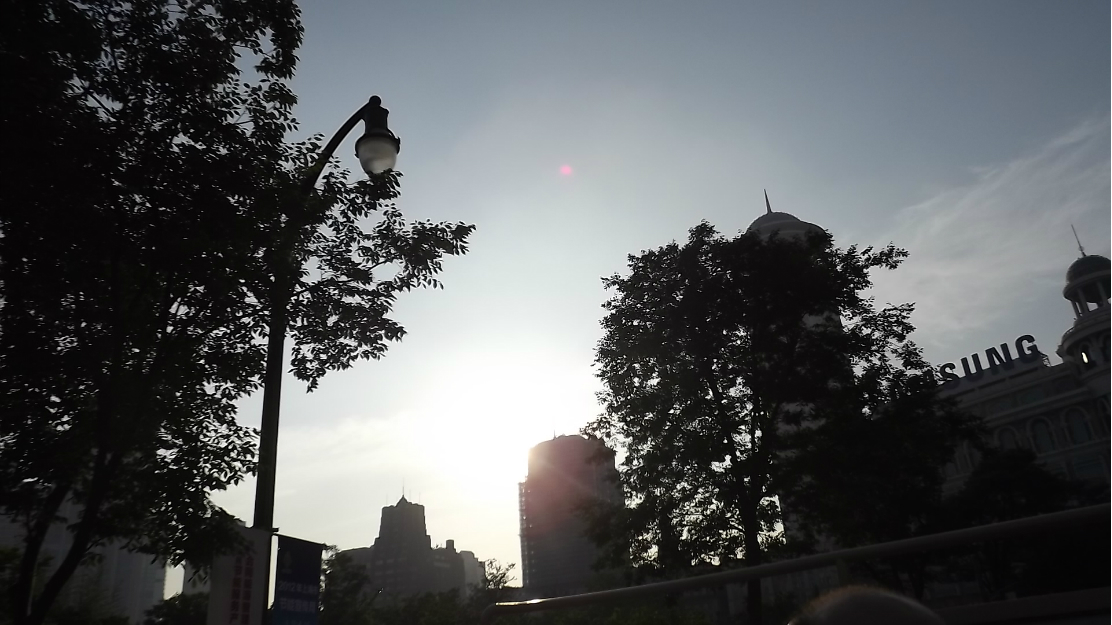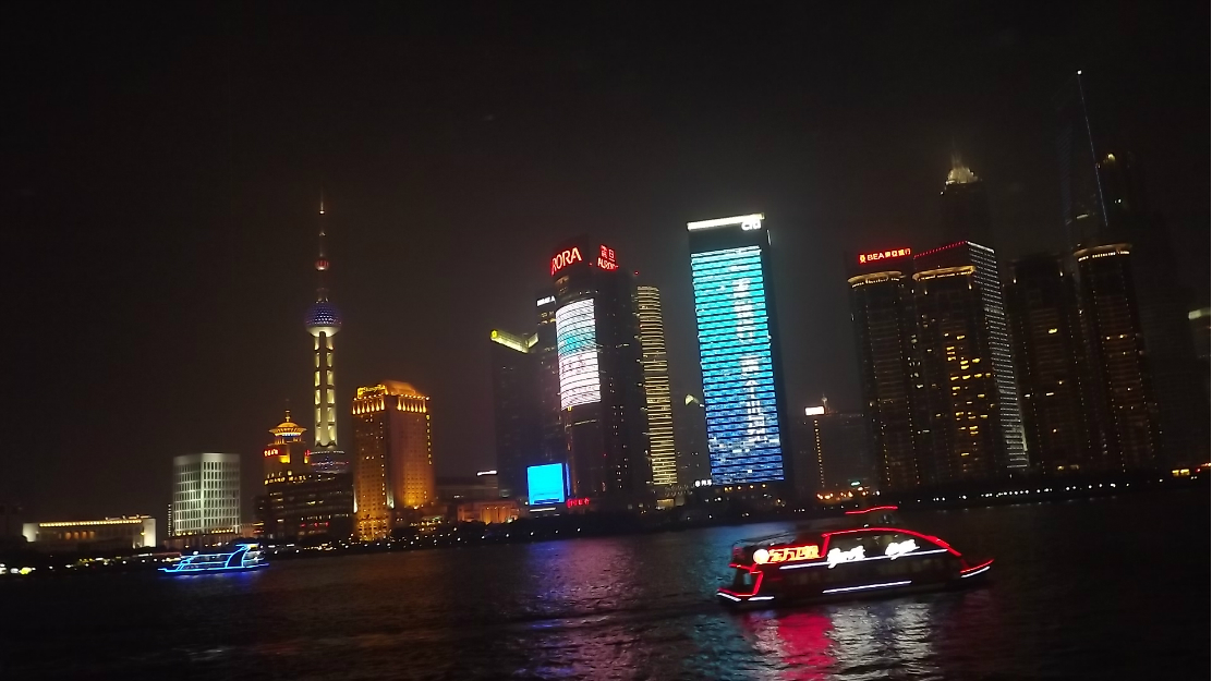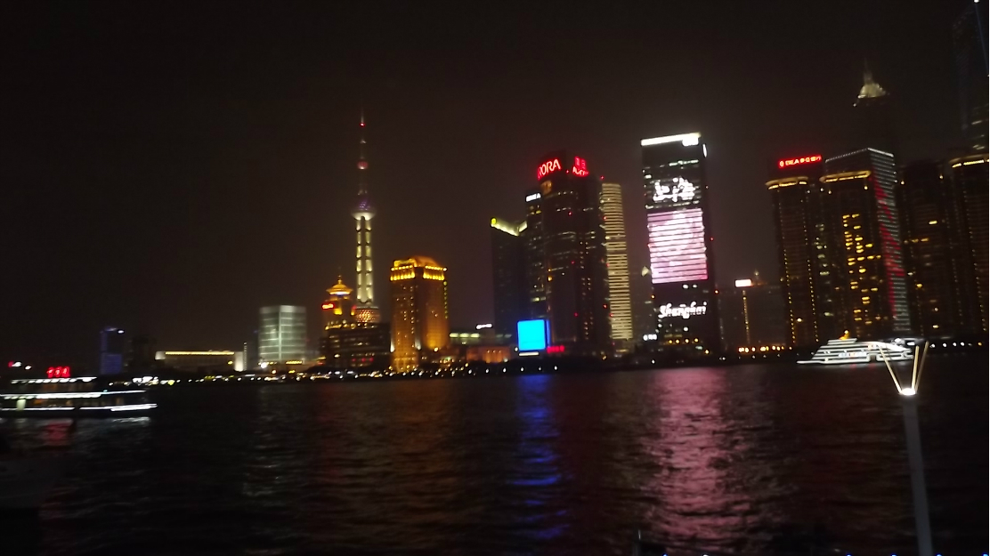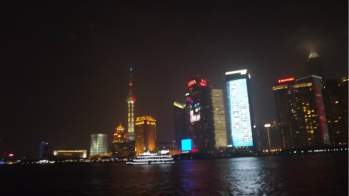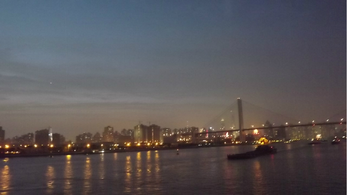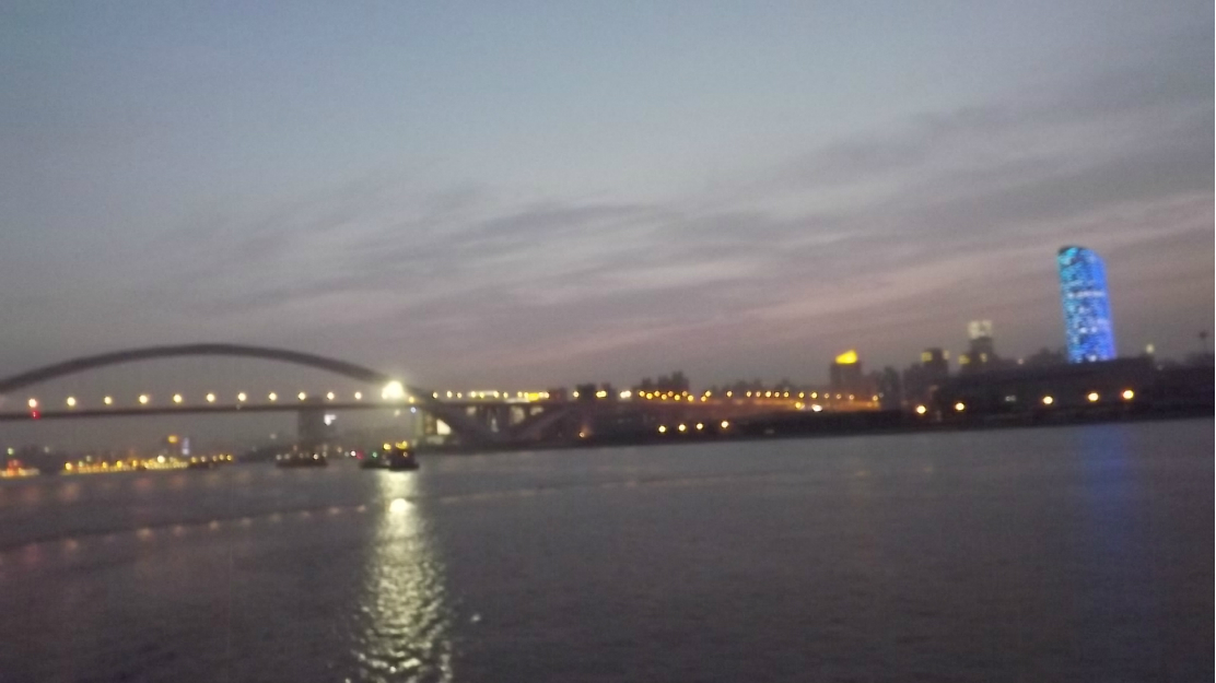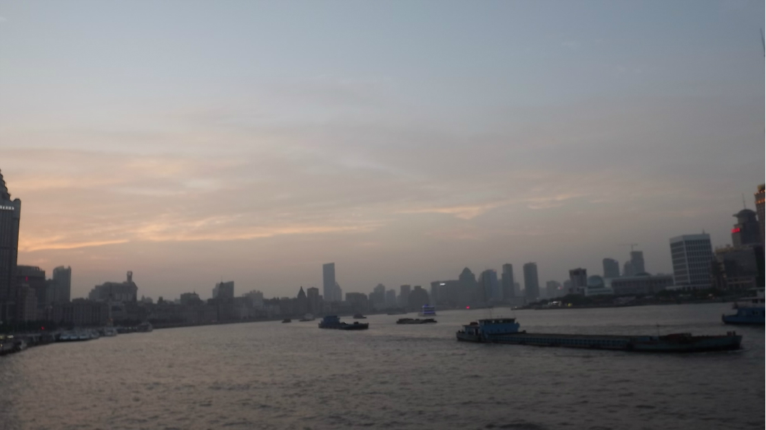 晚上一个半小时的黄浦江 游览船 ,坐上的时候正赶上太阳日落 时间段正和好