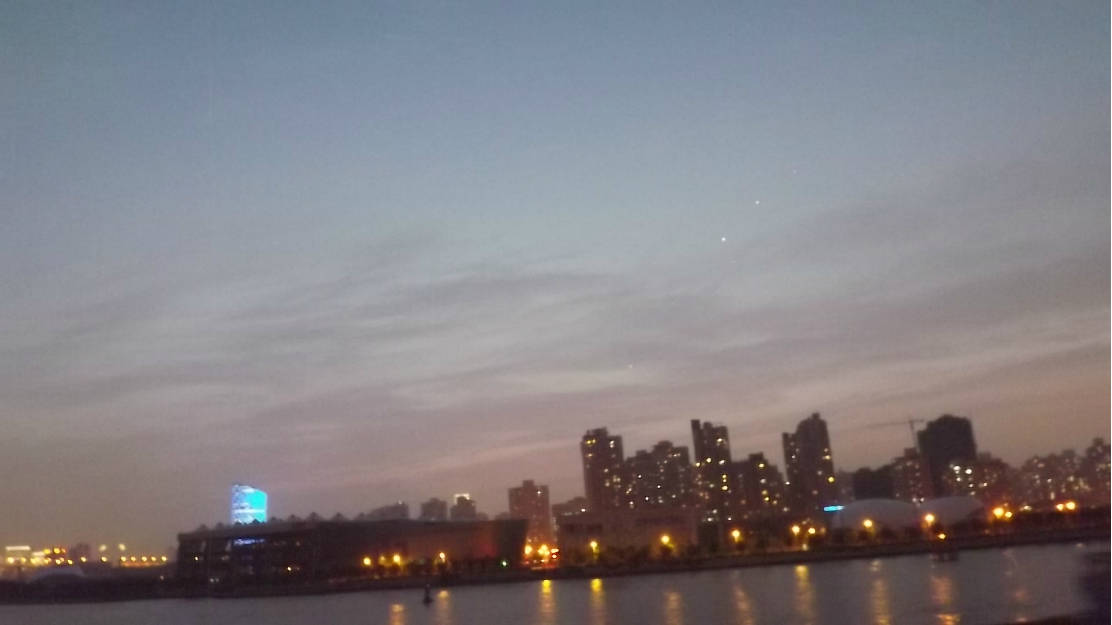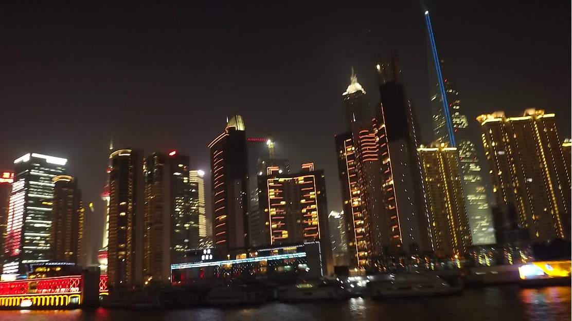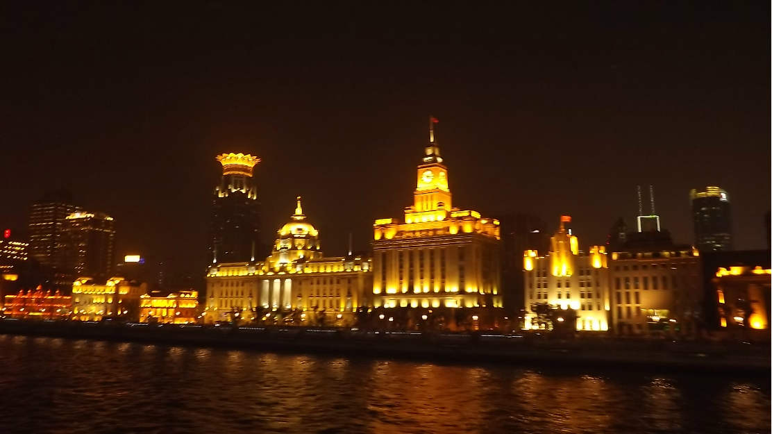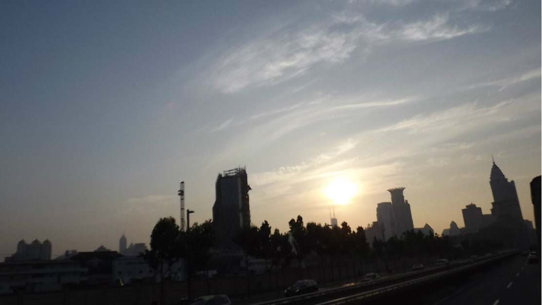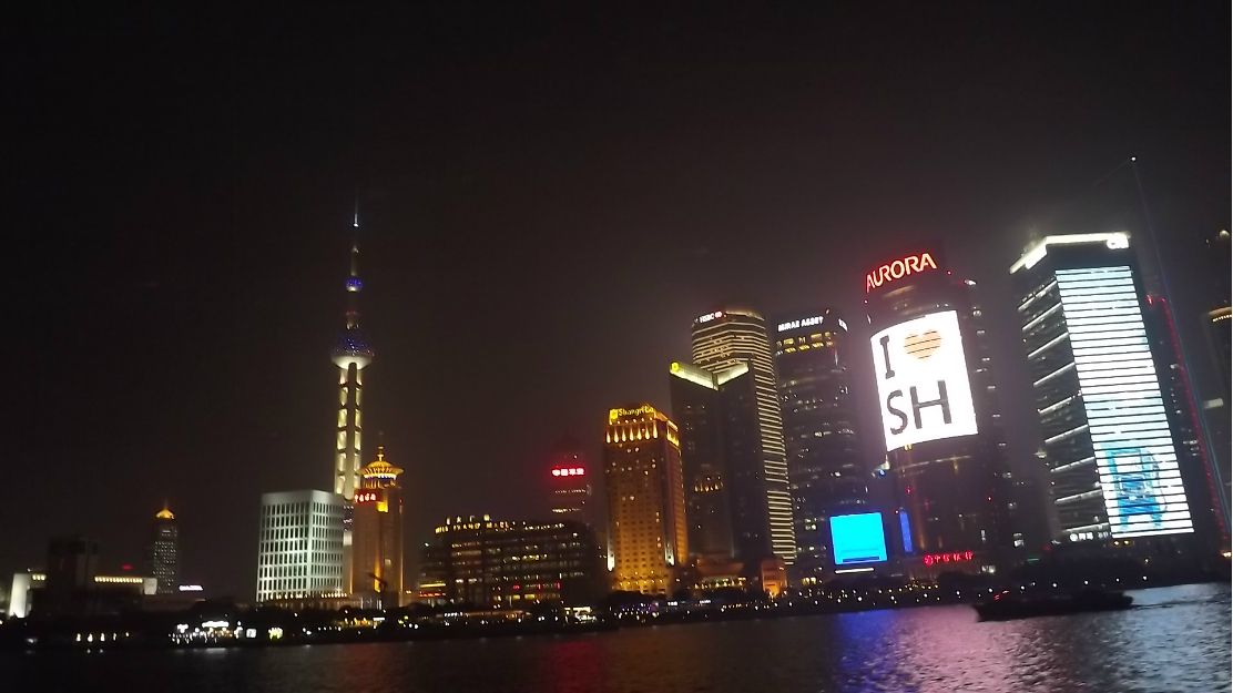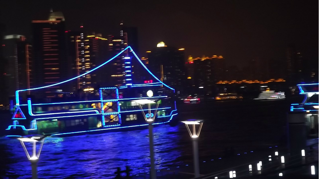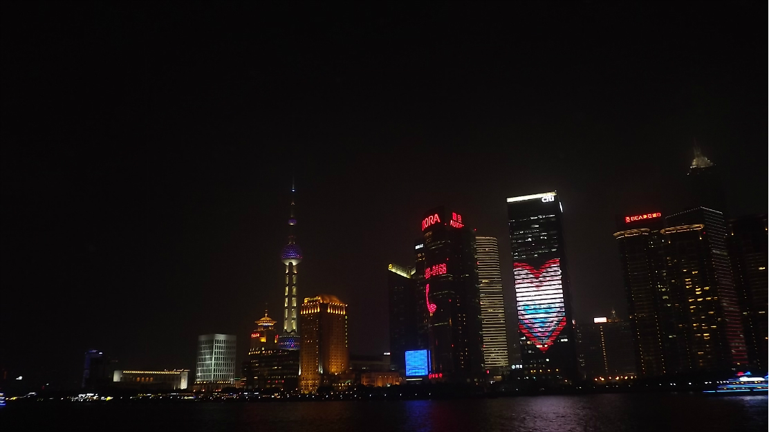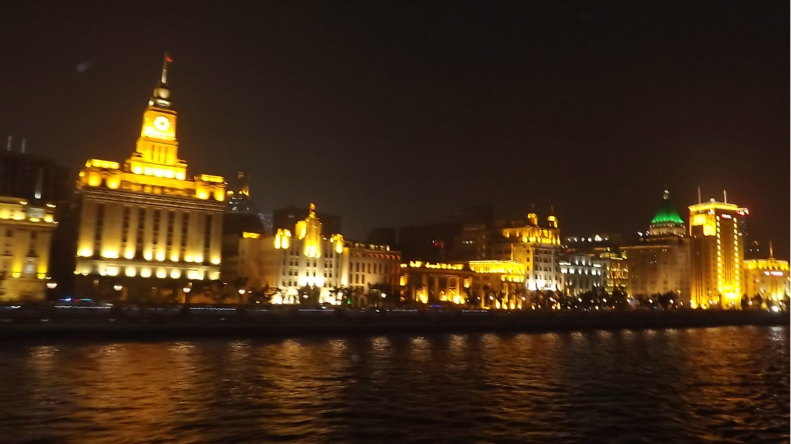 晚上一个半小时的黄浦江 游览船 ,坐上的时候正赶上太阳日落 时间段正和好