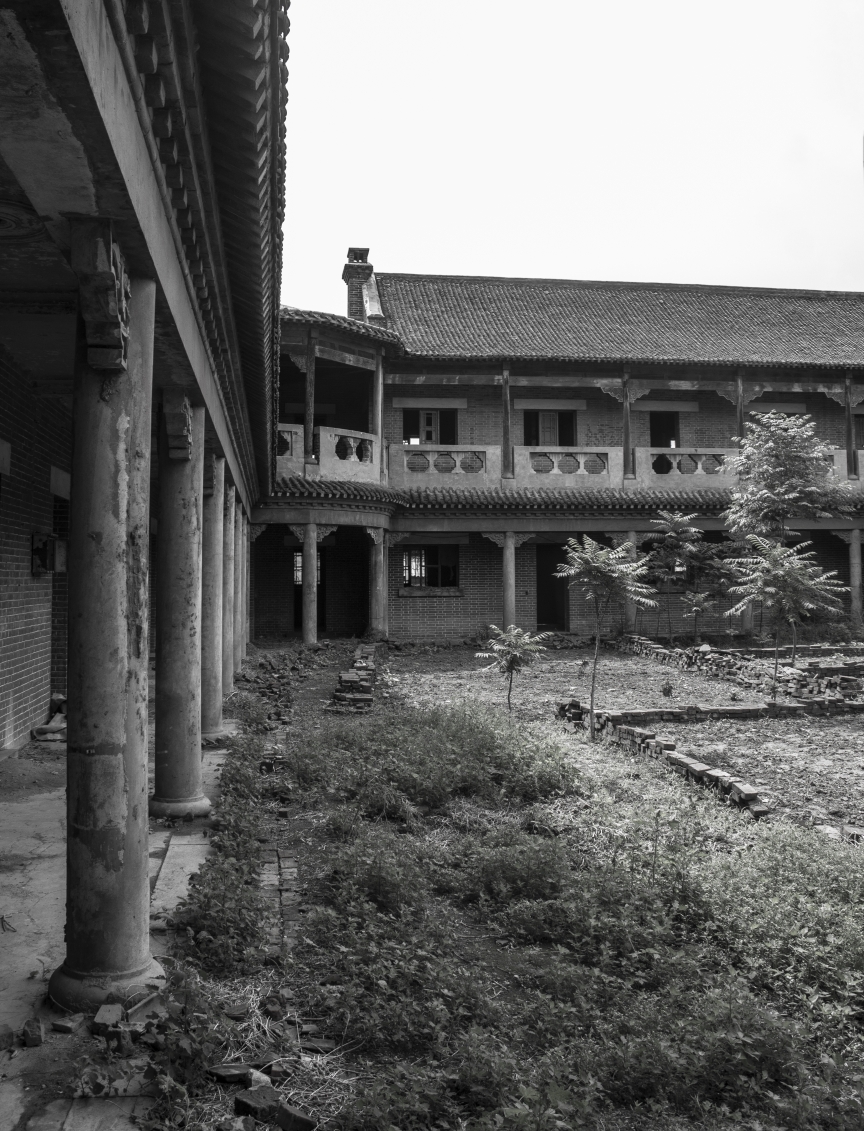 在进大门前,尽管对它的破败已有心理准备,但心中还是一惊,原本宏大的建筑如今如废墟一般暗然度日,视线所及之处充满了强烈的光阴流逝带来的视觉冲击。