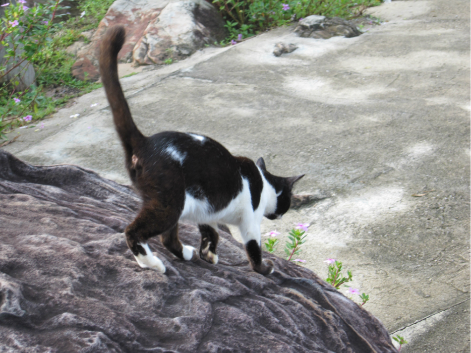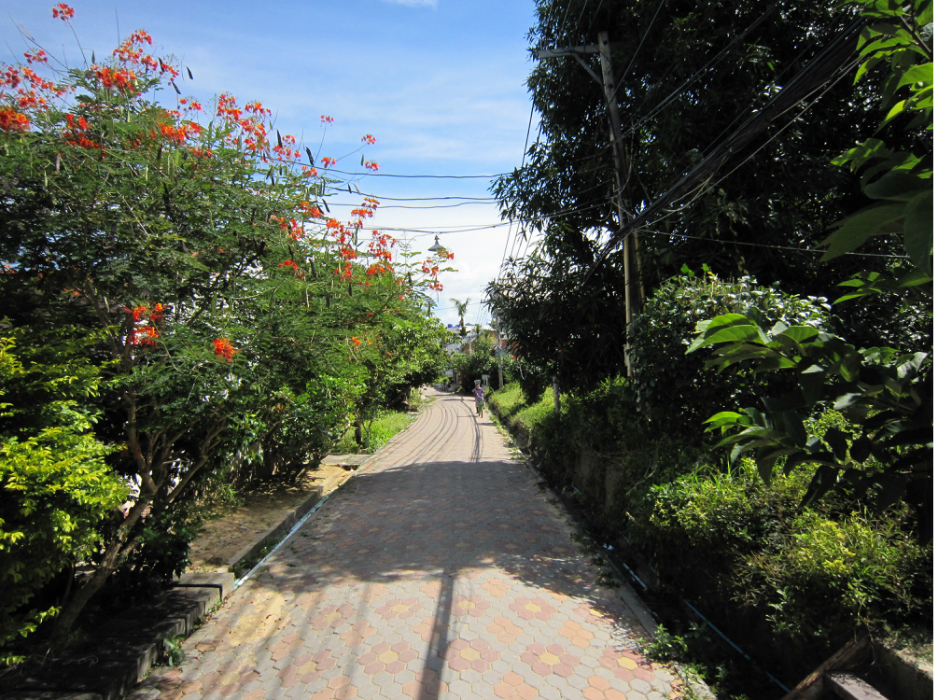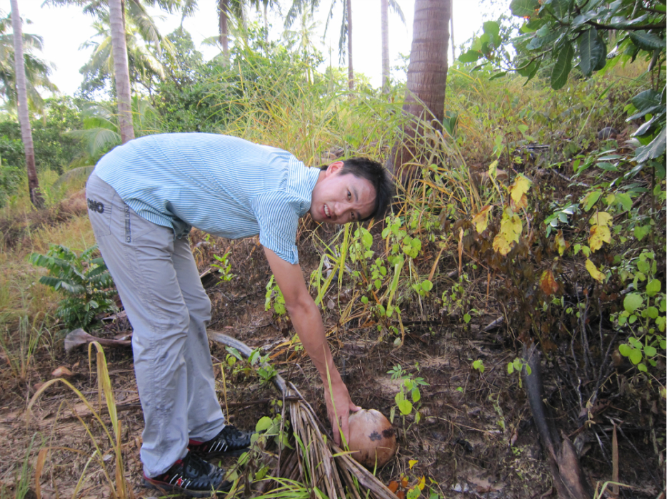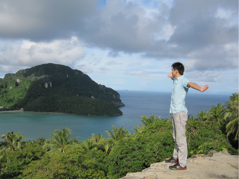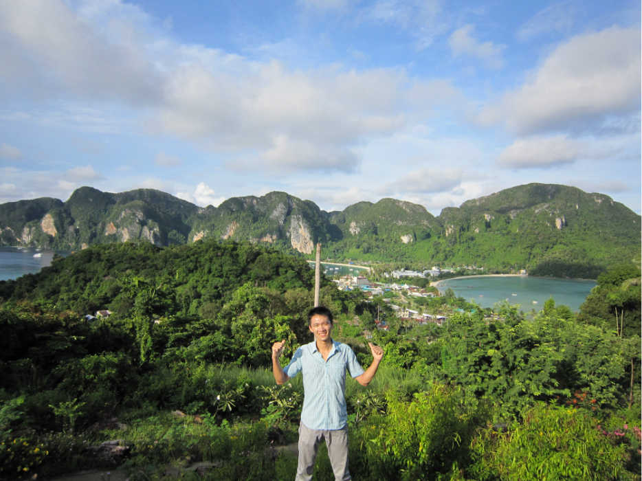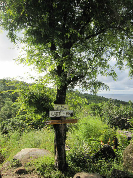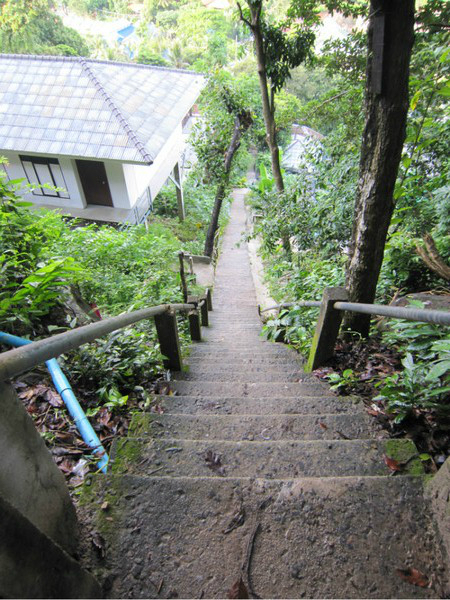 我们深潜之后体力消耗非常大,定了个闹钟,简单洗了个澡到头就睡。结果听到闹钟也迟迟起不来,好不容易起来去找小卡和小敏,一行4个人,沿着地图上指的路去PIPI VIEW POINT了。走着走着发现,上山口 离我们昨天住的地方很近,坑爹了!上了一个又一个坡,来到山脚下,又是无数的台阶。由于赖了一会儿床,天色已晚,我们上山心切蹭蹭地往上走,却苦了小敏和小卡。这两个人,才爬不了多久就喊累了,最后决定不继续往上爬。我们只能自己继续上。