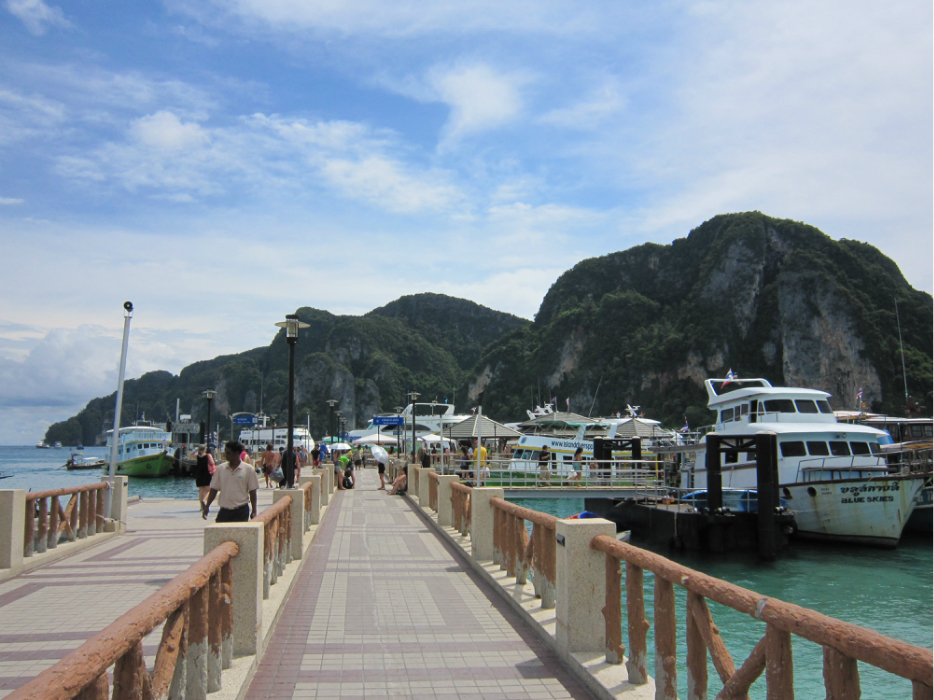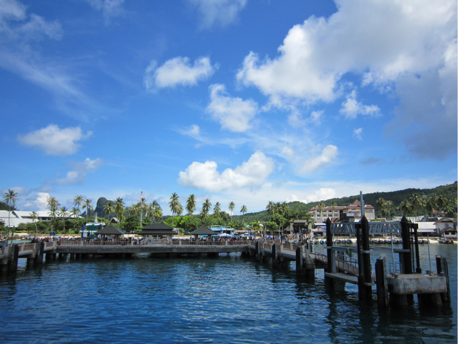 相对于普吉岛 的巴东 这儿非常的悠闲,该具备的都具备,但是不像巴东 那么喧闹。很多人来这里都是一日游,所以如果你在这儿住上几天尤其能体会他的好处。皮皮岛 非常小,形状类似于一个竖向的哑铃,分为北部和南部两大块。北部高级酒店度假村居多,环境好,绝大多数酒店都有自己的沙滩,私密性强。但是交通不方便,如果你想出去玩还要支付高额的租船的交通费用。度蜜月,或者想要休闲度假的人建议去北部。南部旅游业相对北部发达很多,租长尾船出海,参加当地的旅行代理店去一日游,浮潜、深潜,选择多,价格低。酒店也是高低价位的一应俱全。但是沙滩真的是很一般。想要来HAPPY玩几天的驴友一定要住在南部,尤其是通赛湾码头一带,是最方便的地段。