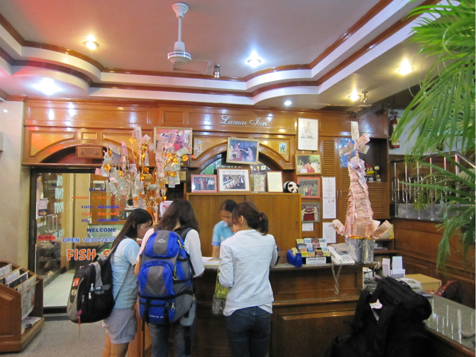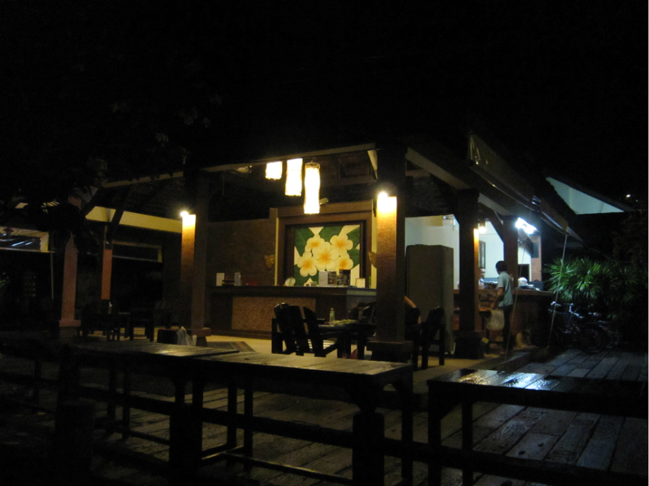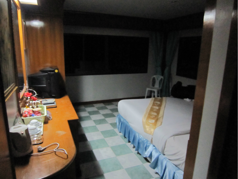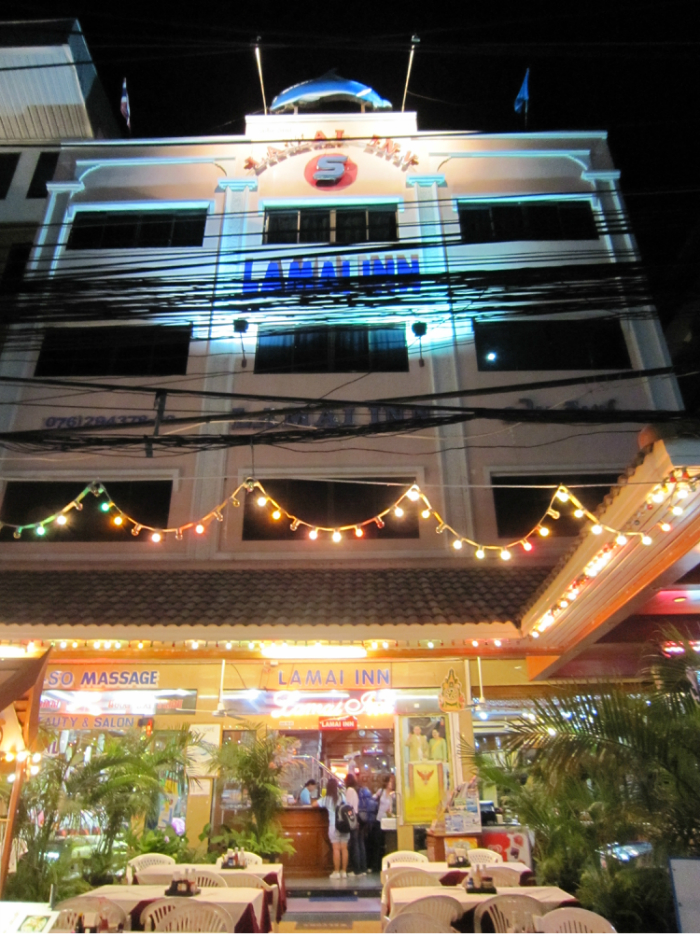 从机场到巴东 大约1小时。如果大家乘的是19:00从曼谷 到巴东 这趟机就放弃当晚去家乐福买东东西的梦想吧。抵达我们的宾馆,lamai inn。房间挺大的,床也很大,卫生也挺好。至于噪音,也许我们当天睡得太晚了,没有影响到我们的睡眠。订的时候是600泰铢,完全对得起这个价钱。