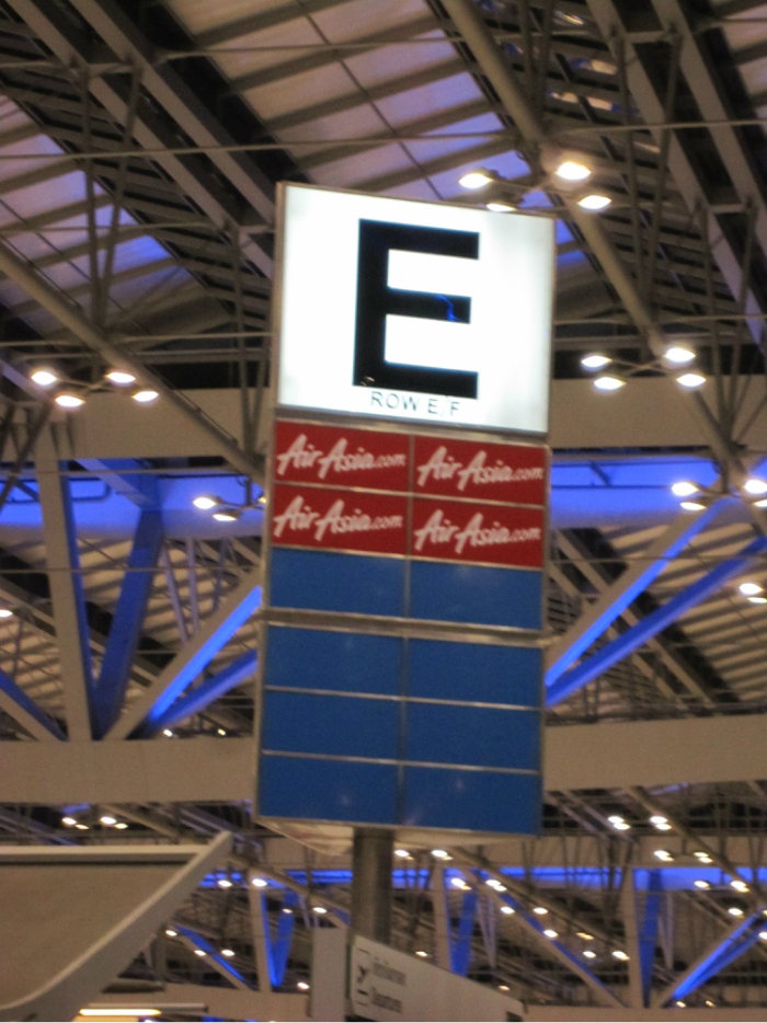 其实国际航班跟国内航班的登机方法没什么两样,曼谷 机场虽然大,但是格局明晰,不用担心找不到正地方。亏得我出发前白担心一场。亚航的登机口在左手边最靠里的位置,EF区。亚航的工作人员很热心,还有一个帅帅的泰国 男孩会中文,呵呵~~