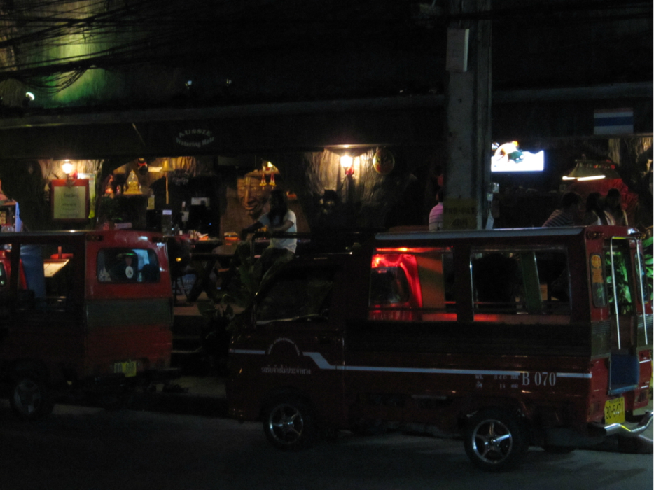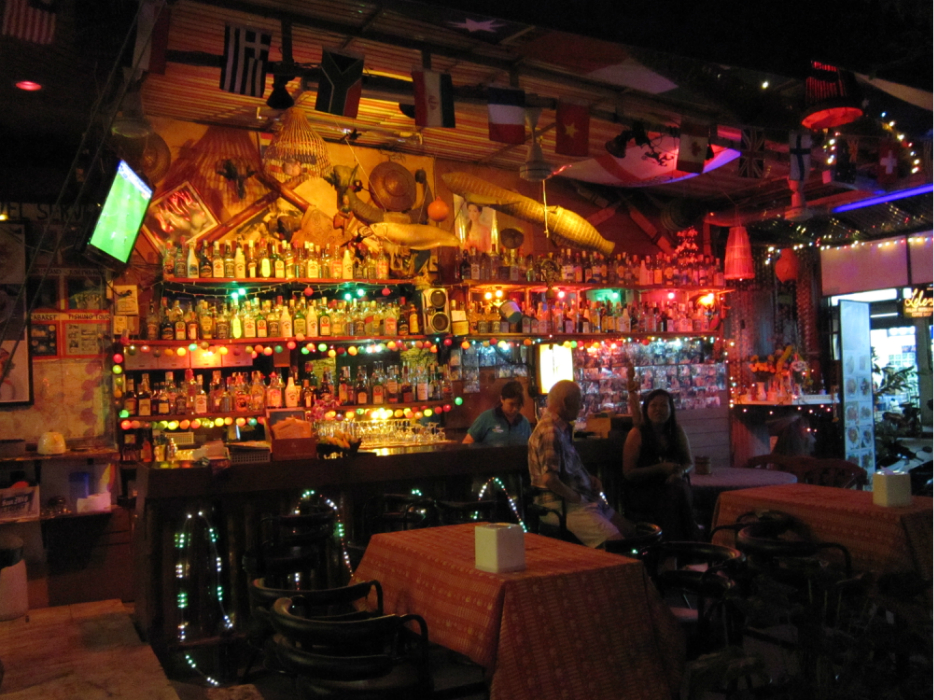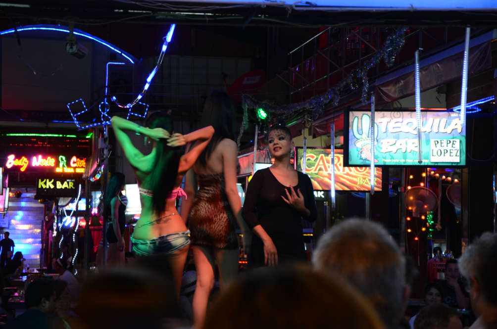 Tiger下面的小酒吧都是些酒吧女站在吧台上跳舞,很低俗的感觉。在泰国 ,比较低级的鸡都是黑人,经常看他们四五人一群聚在酒吧某个角落,或在街角,浓妆艳抹,一般都穿着黑衣服。
