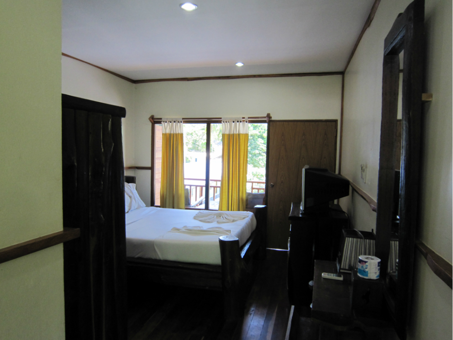 2楼园景房。之前看评论说住1楼的话会比较潮,我们比较幸运,在也许是因为在订房的时候在备注栏里写了希望能够住2楼的房间。